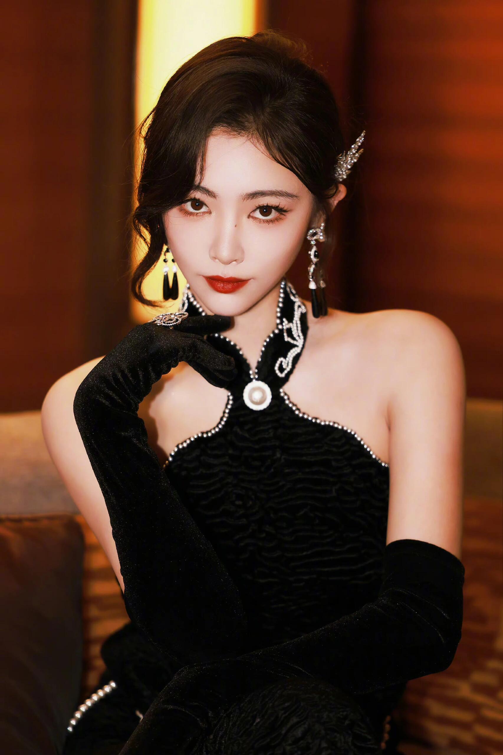 这羽毛披肩和发饰也太有戏了吧,许佳琪你这是要抢了红毯所有灯光的节奏?黑裙红唇,简直是复古时尚的新标杆,不服不行