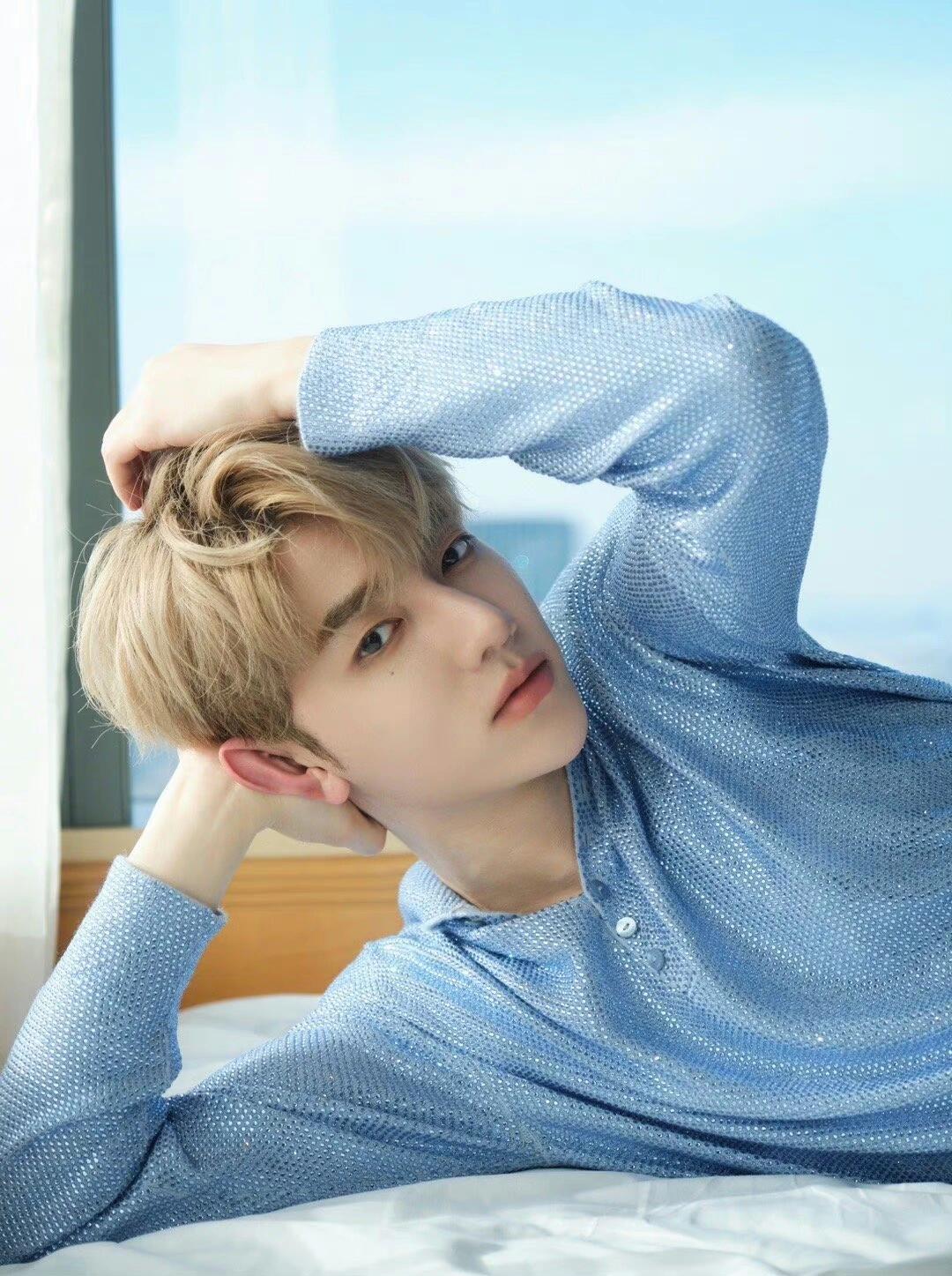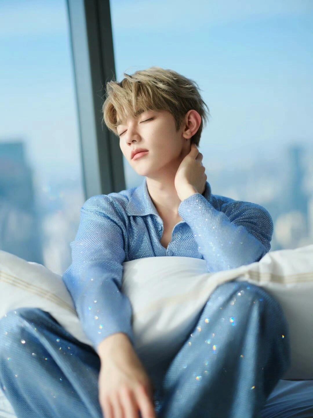 章昊蓝色套装出席展览活动 ,非常帅气的演绎 ~ 这套 Look 也是品牌春夏系列里的重点造型之一 ,曝光相当高 ,清新 、明朗的 “蓝” 朋友登场