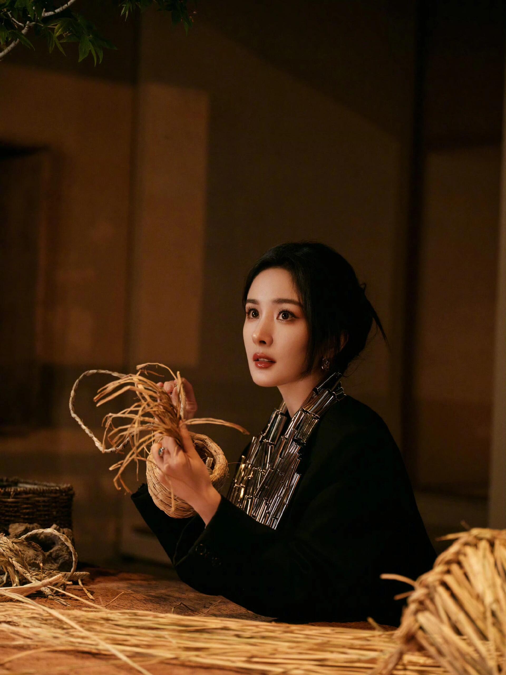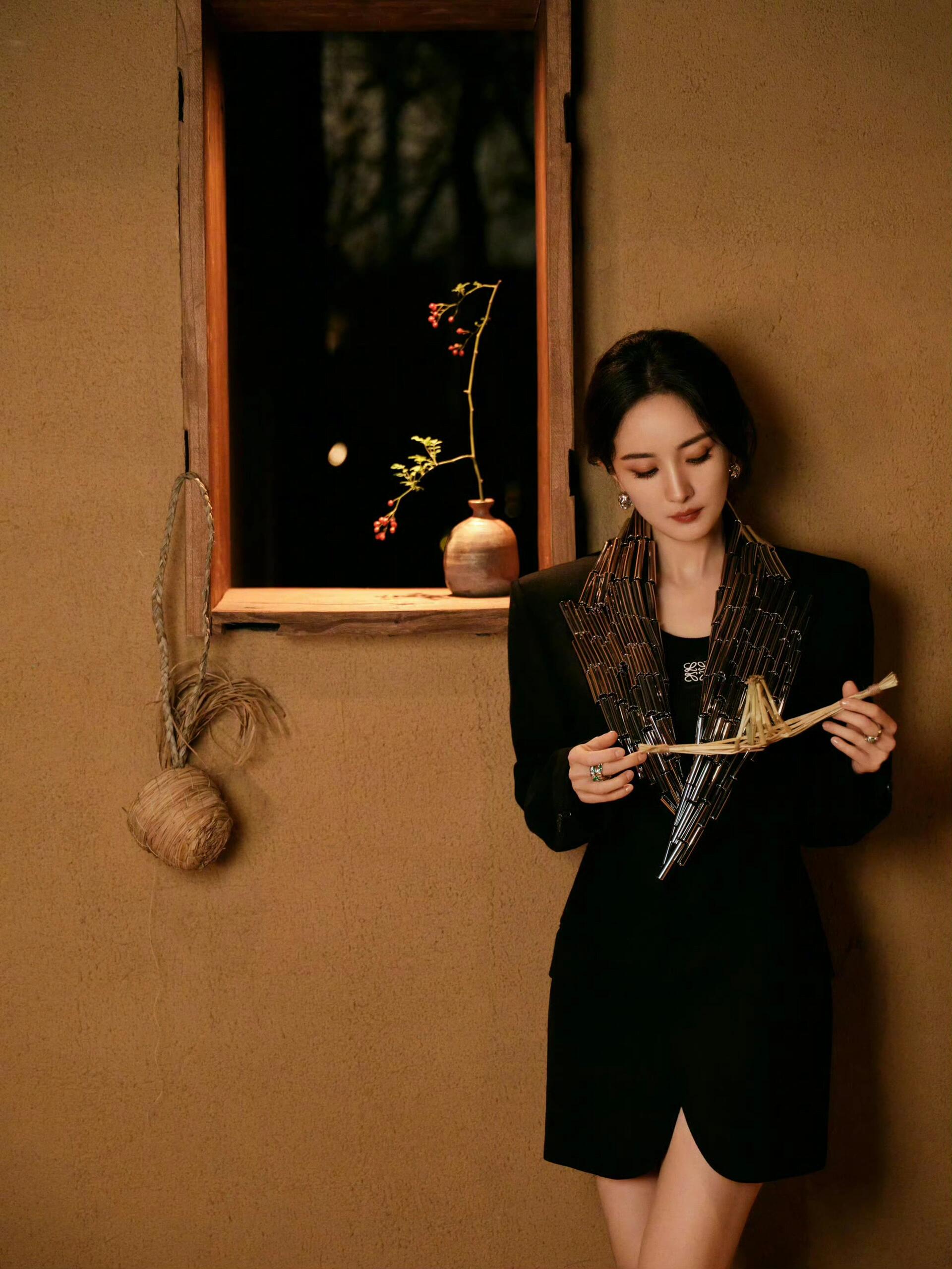 杨幂,造型图集,黑色西装、钢管装饰… 利落时髦女郎,造型片搭配非遗团扇等中式元素,交融东西韵味的视觉影像。