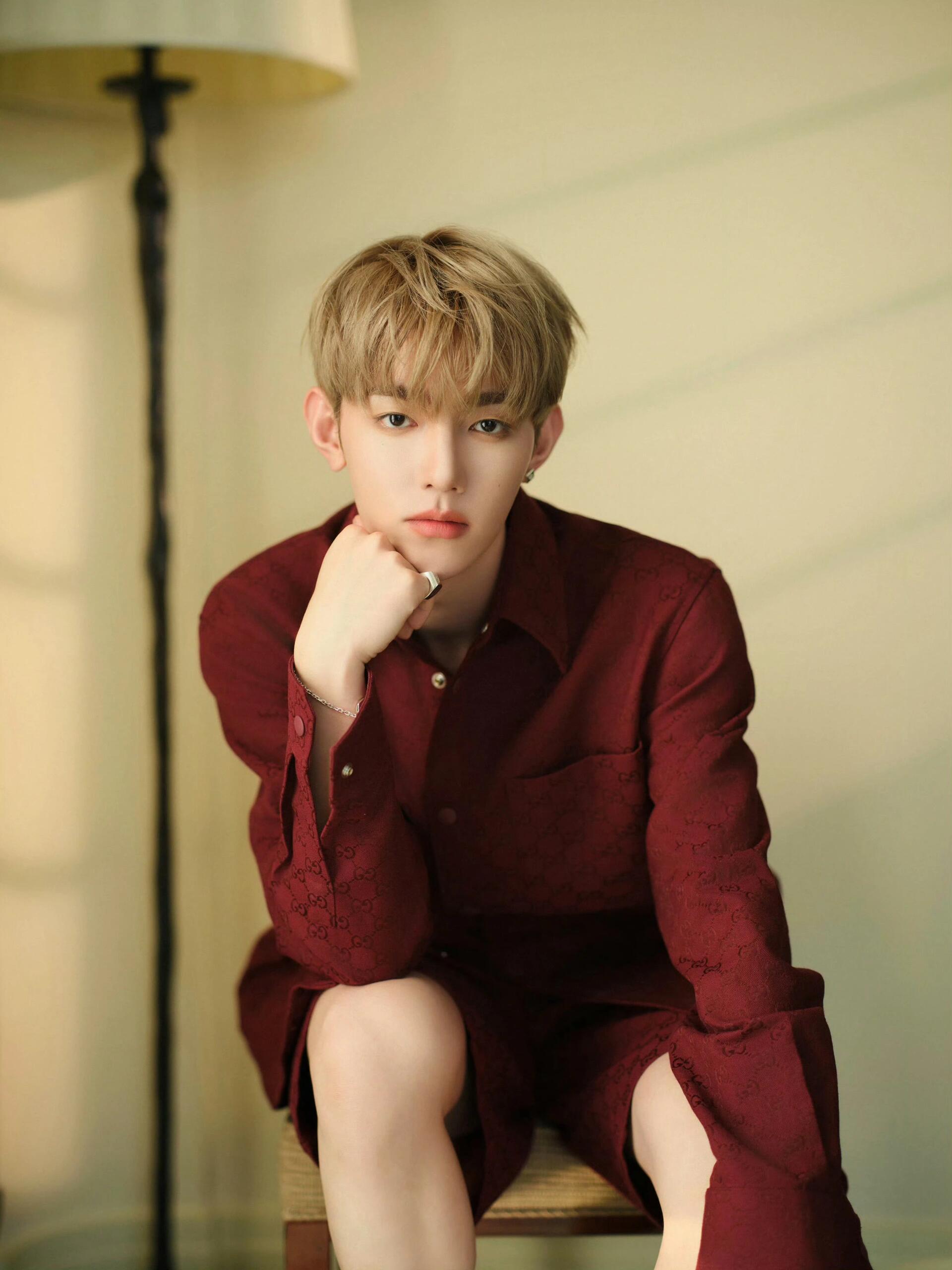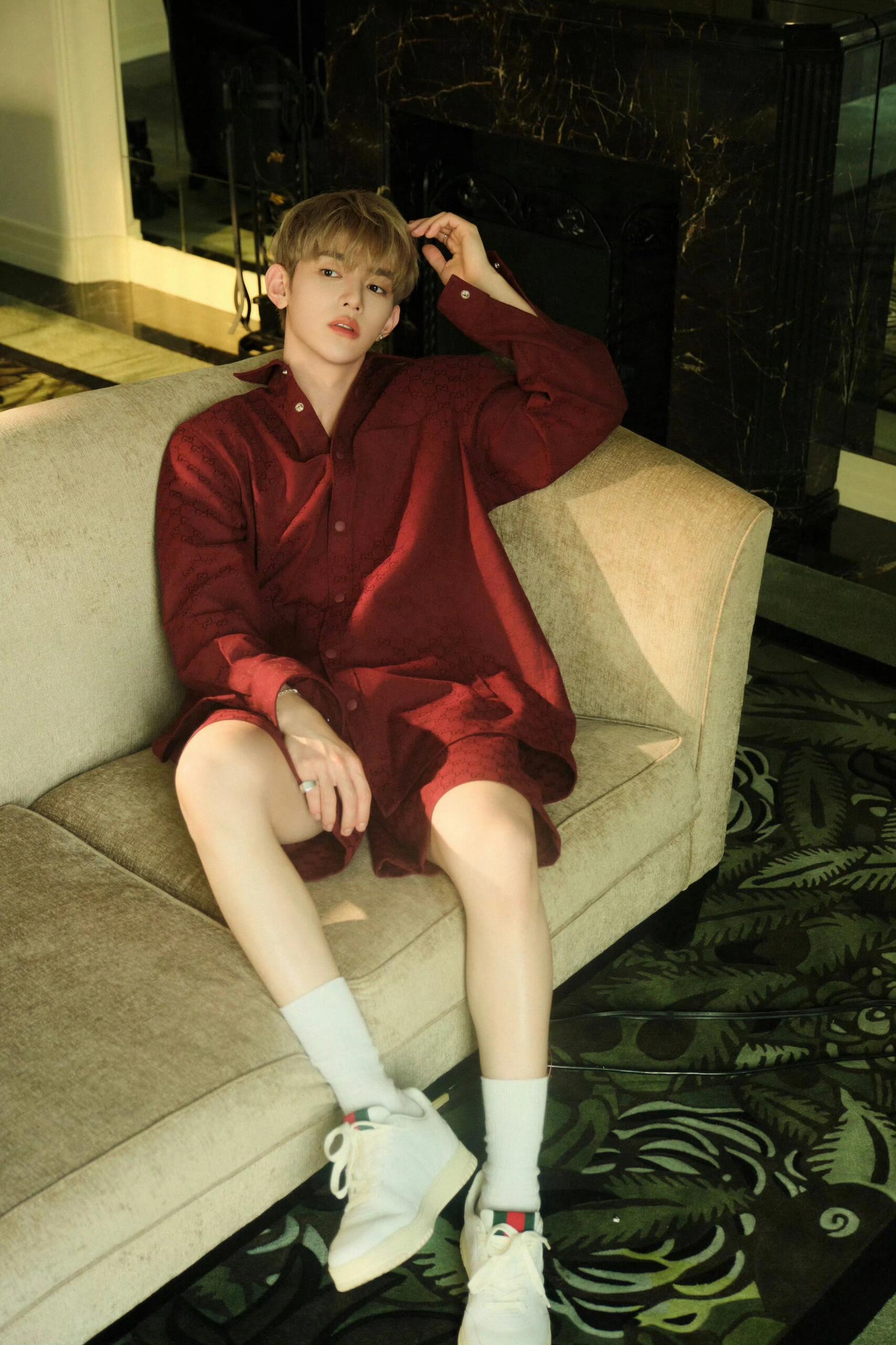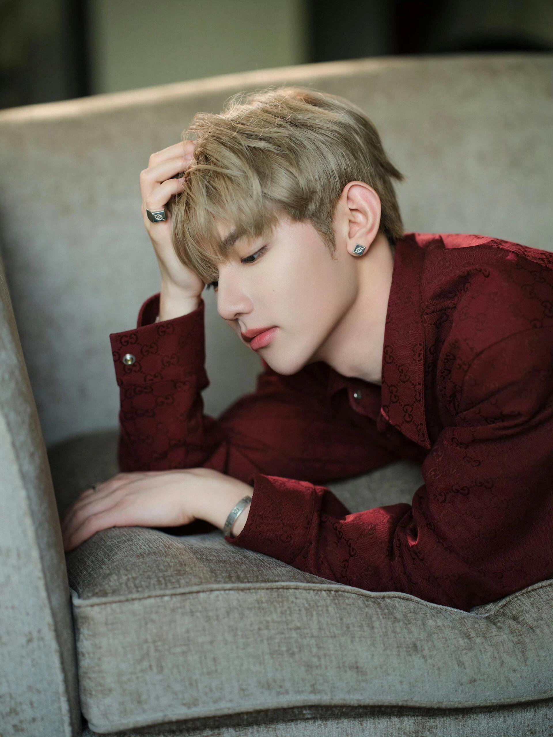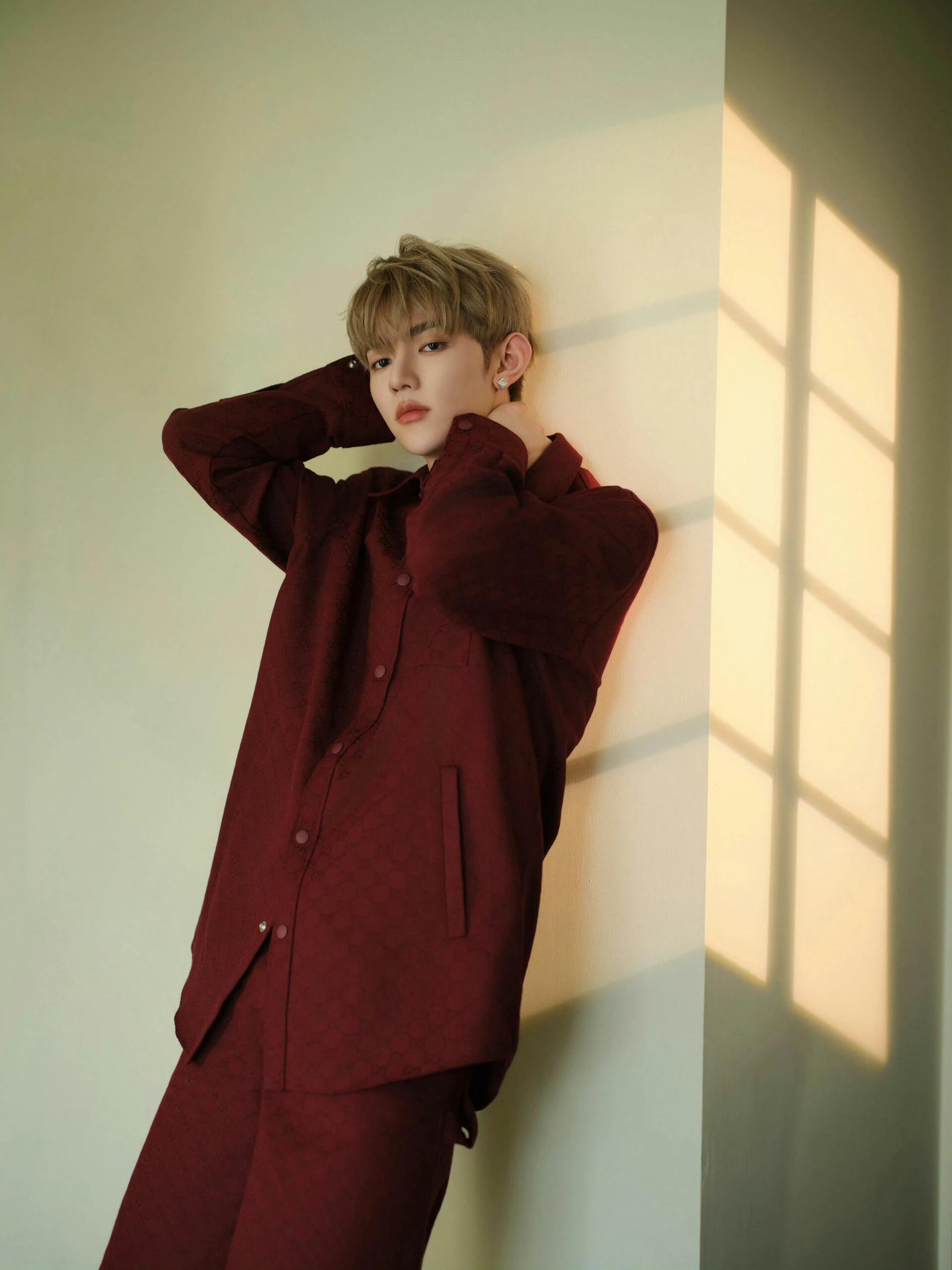章昊造型图,安可拉红的暗纹套装,一张俊秀又青春的新鲜面孔~