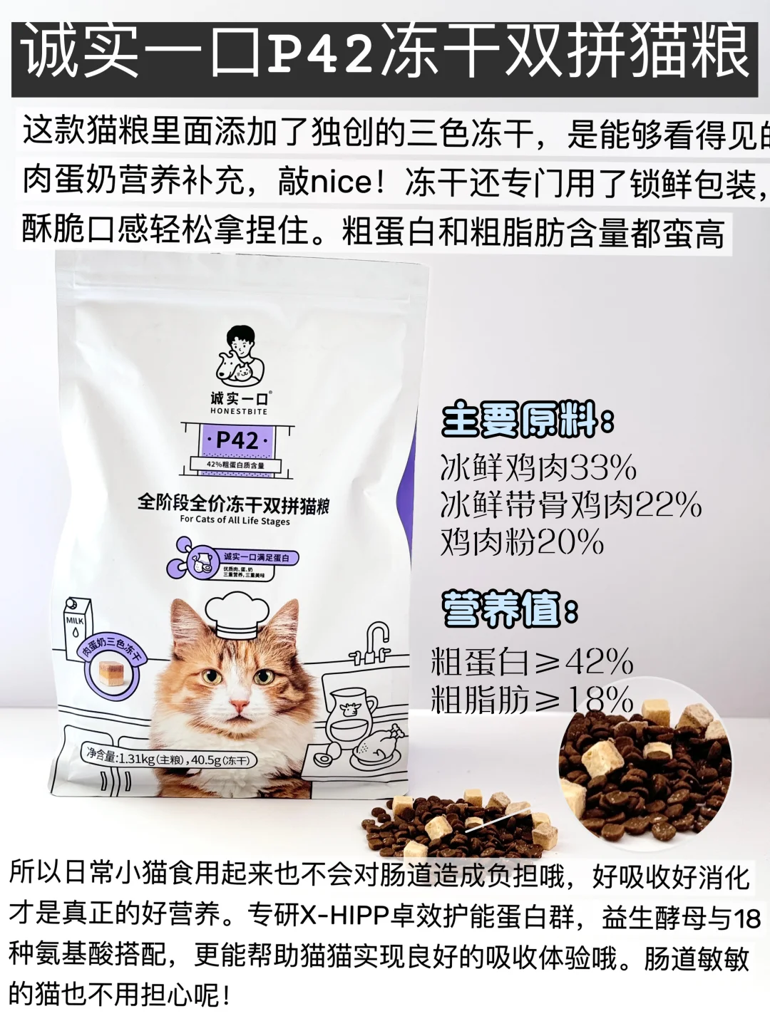 ✅诚实一口p42双拼冻干猫粮