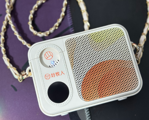 金运M10无线领夹式扩音器在防啸叫、佩戴舒适度和功能上表现均衡,DSP+ANC防啸双芯片解决啸叫问题,8g轻量化麦克风满足长时间佩戴,360°全指向麦克风和77mm大喇叭提升收音与扩音效果,2.4G无线+蓝牙5.4双传输及30米距离,连接稳定覆盖广,支持多种播放方式。不过,扩音器251g偏重,手持使用时手腕易酸痛,且播放音频文件时,不支持音调调节功能,对于需要调整声音高低的用户来说,灵活性不足。推荐③:好 牧 人无线领夹式扩音器综合指数:❤❤❤❤一句话推荐:3英寸内磁大喇叭扩音声纯净有穿透力、车规级DSP防啸叫芯片防啸叫