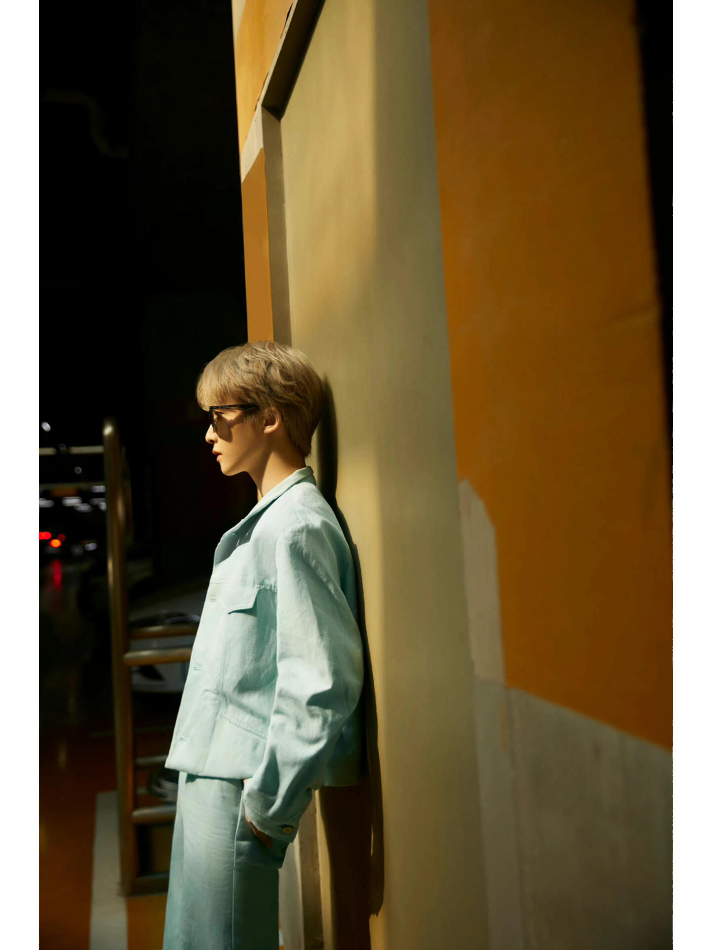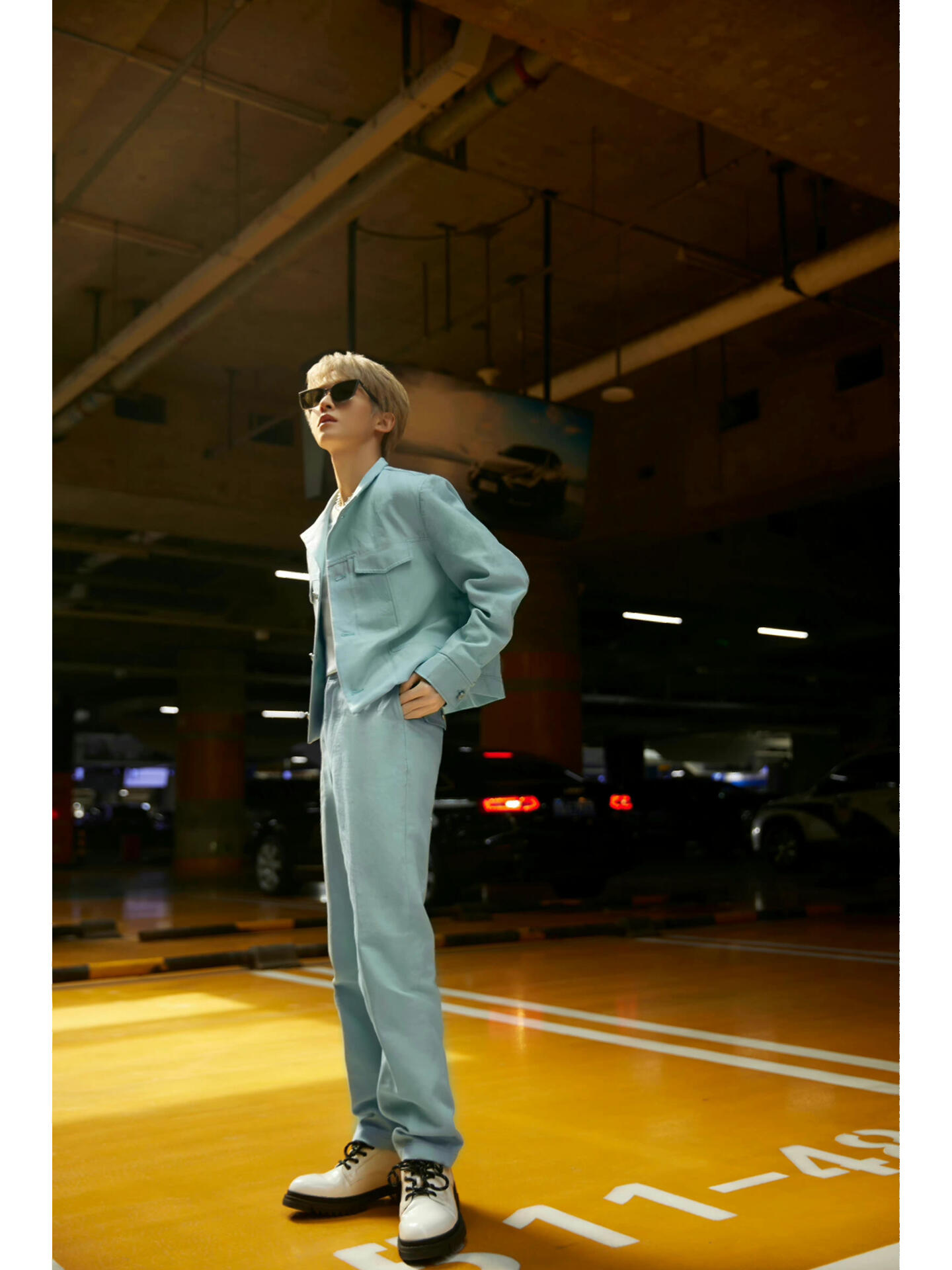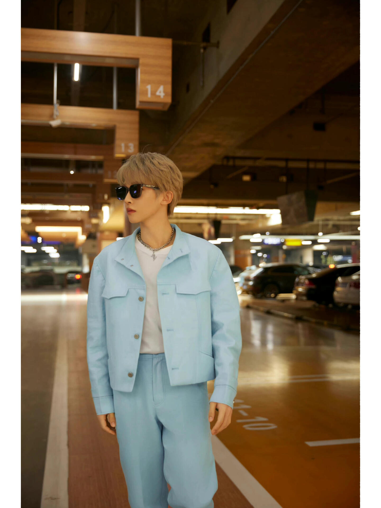 刘宇受邀请前往巴黎时装周,一身湖水蓝牛仔套装,佩戴金属字母项链,简约清新的少年感,即将开启塞纳河畔边的时装之旅