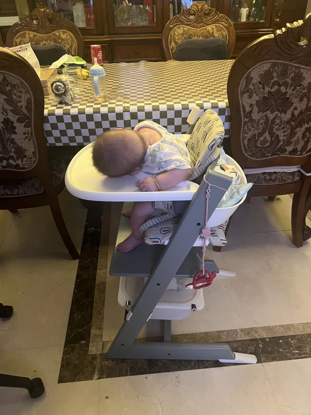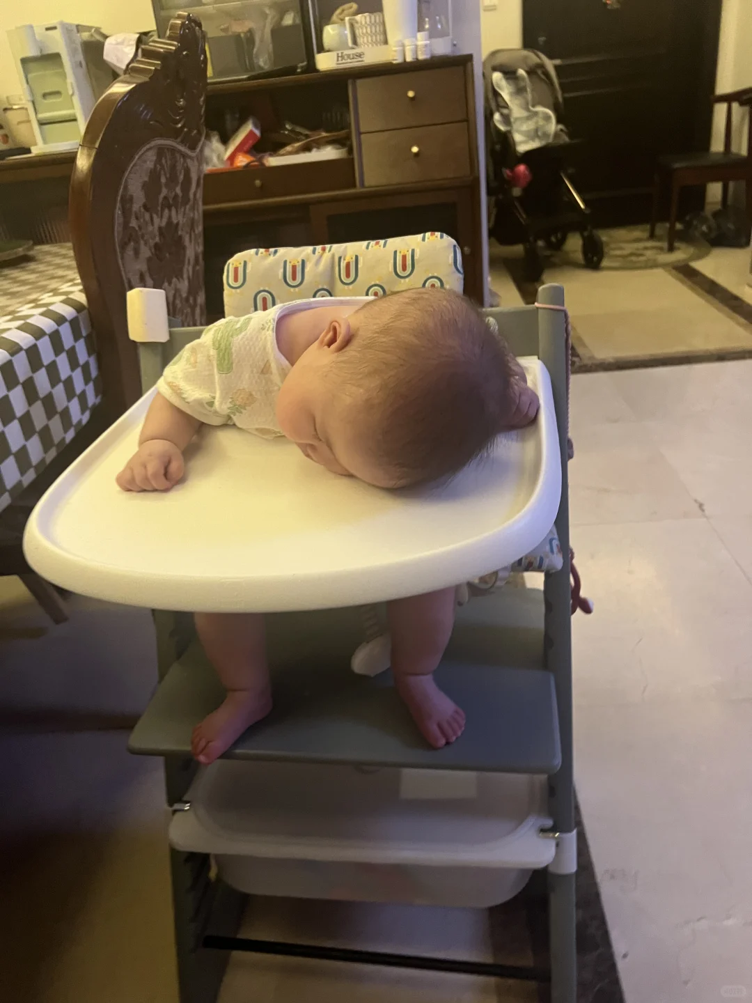 每次户外回来,喂好奶就秒睡~ 另外要夸夸自己买的这个贝亲奶瓶配件,直接省了一个鸭嘴杯的钱💰✌️