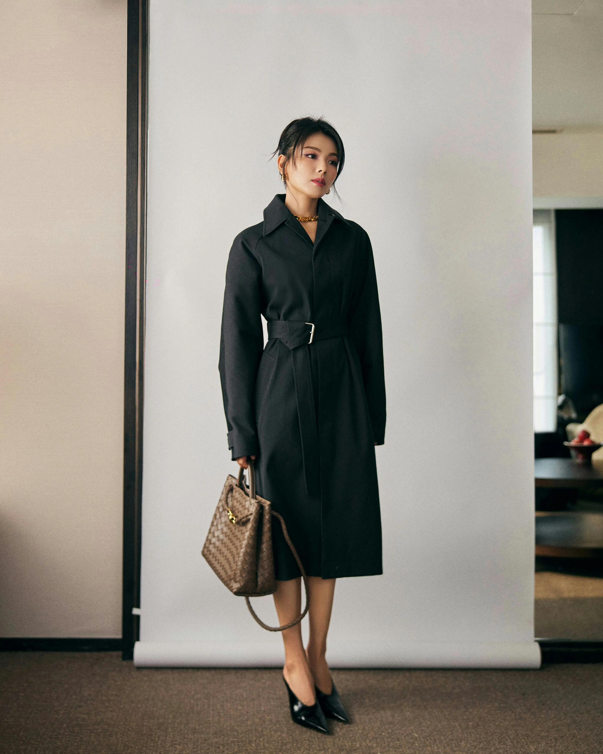 刘涛黑色大衣配尖头高跟,金色配饰点缀细节,是干练时髦的都市女郎,也是黑暗荣耀风的冷艳御姐,现场状态也是气场十足