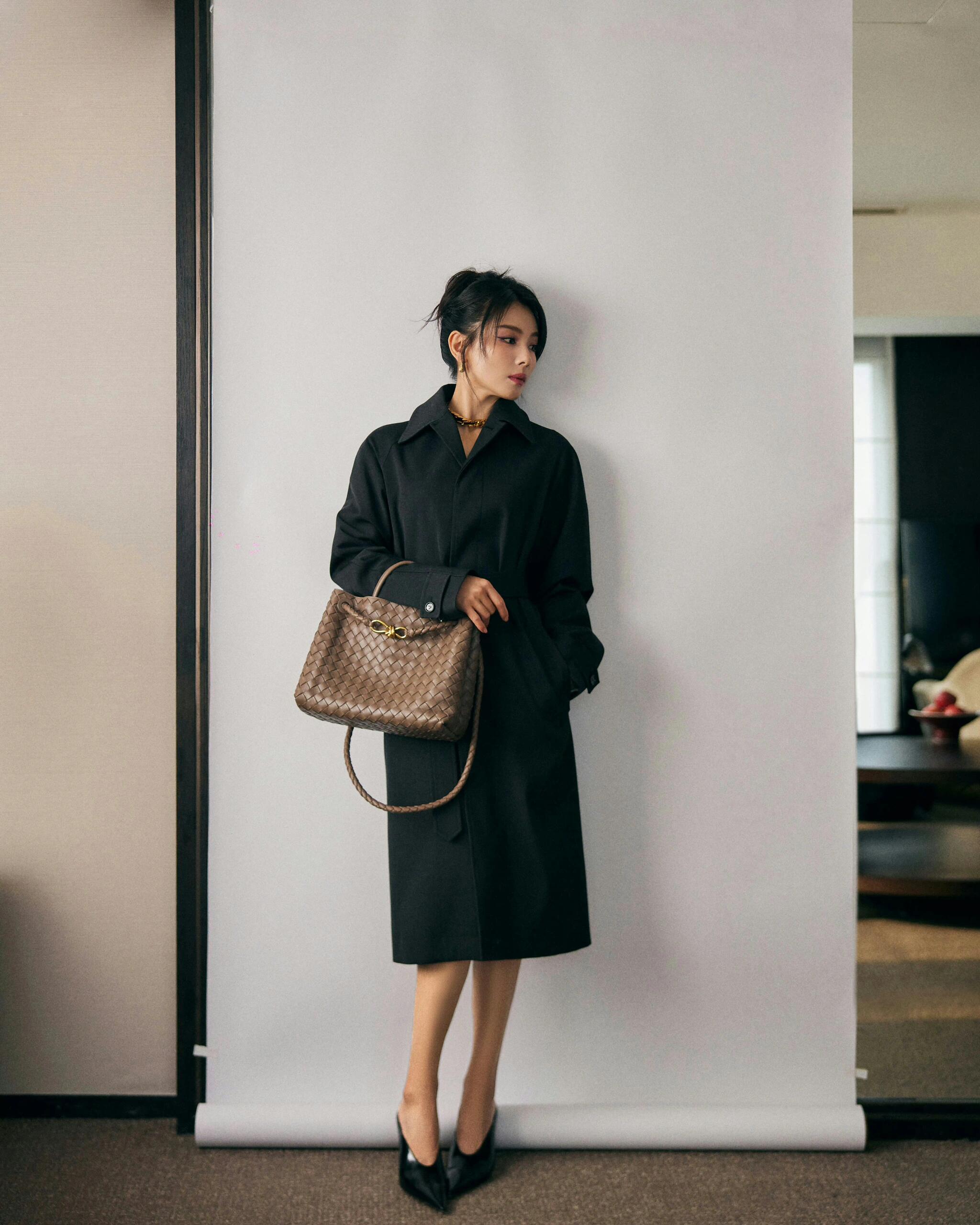 涛姐这身行头,黑色大衣加尖头高跟,金色点缀,简直就是内娱女明星的穿搭教科书!