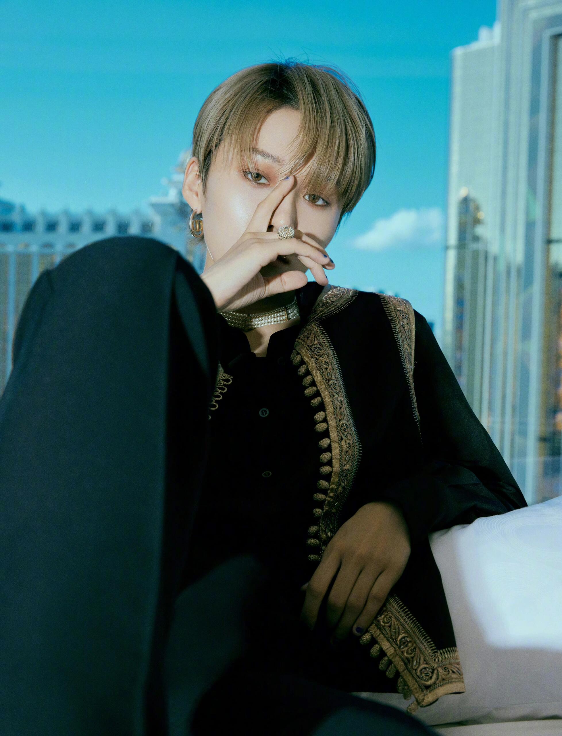 刘雨昕,复古黑金盘扣,精美珍珠项链,华丽又潇洒的姿态~