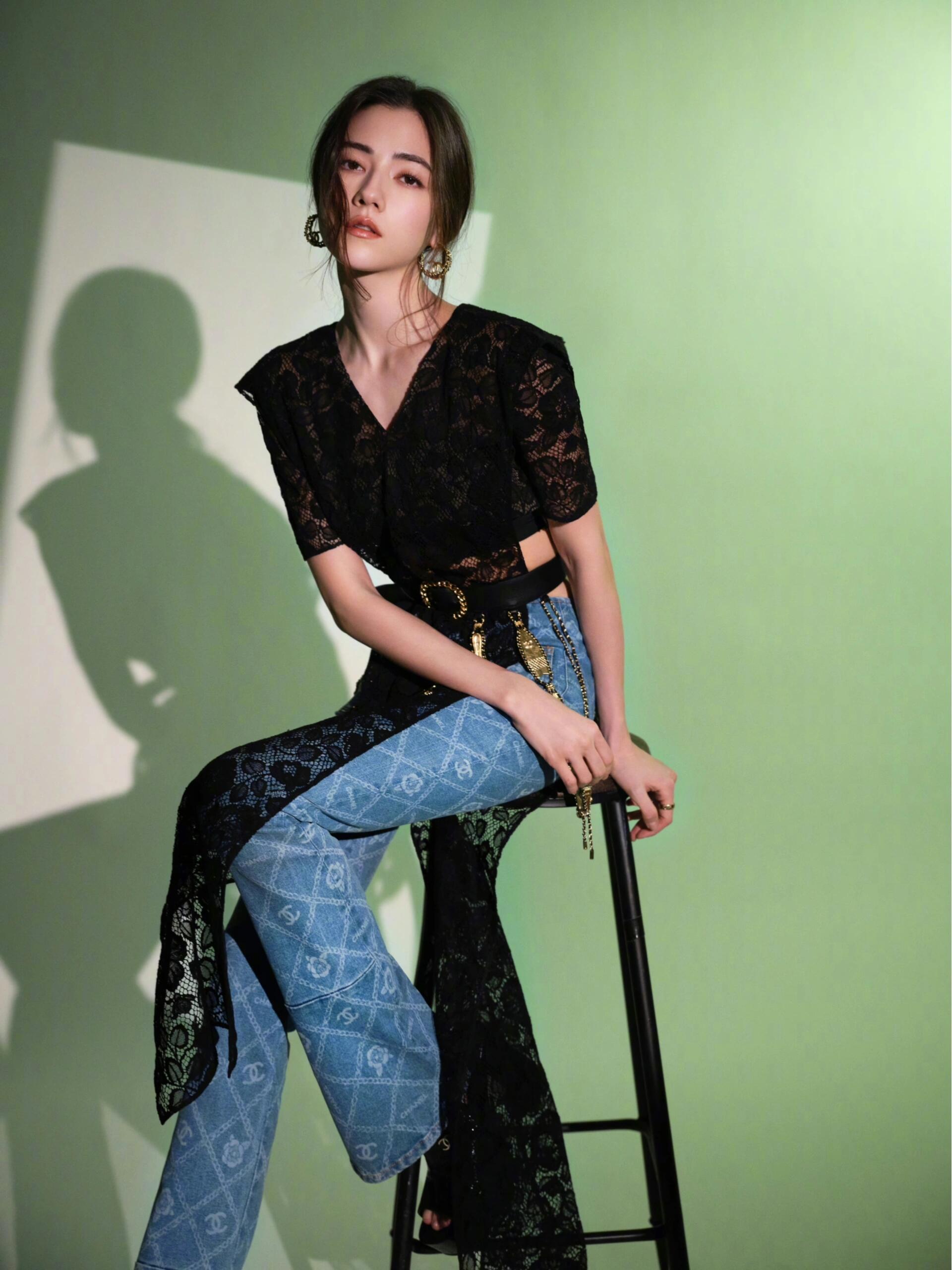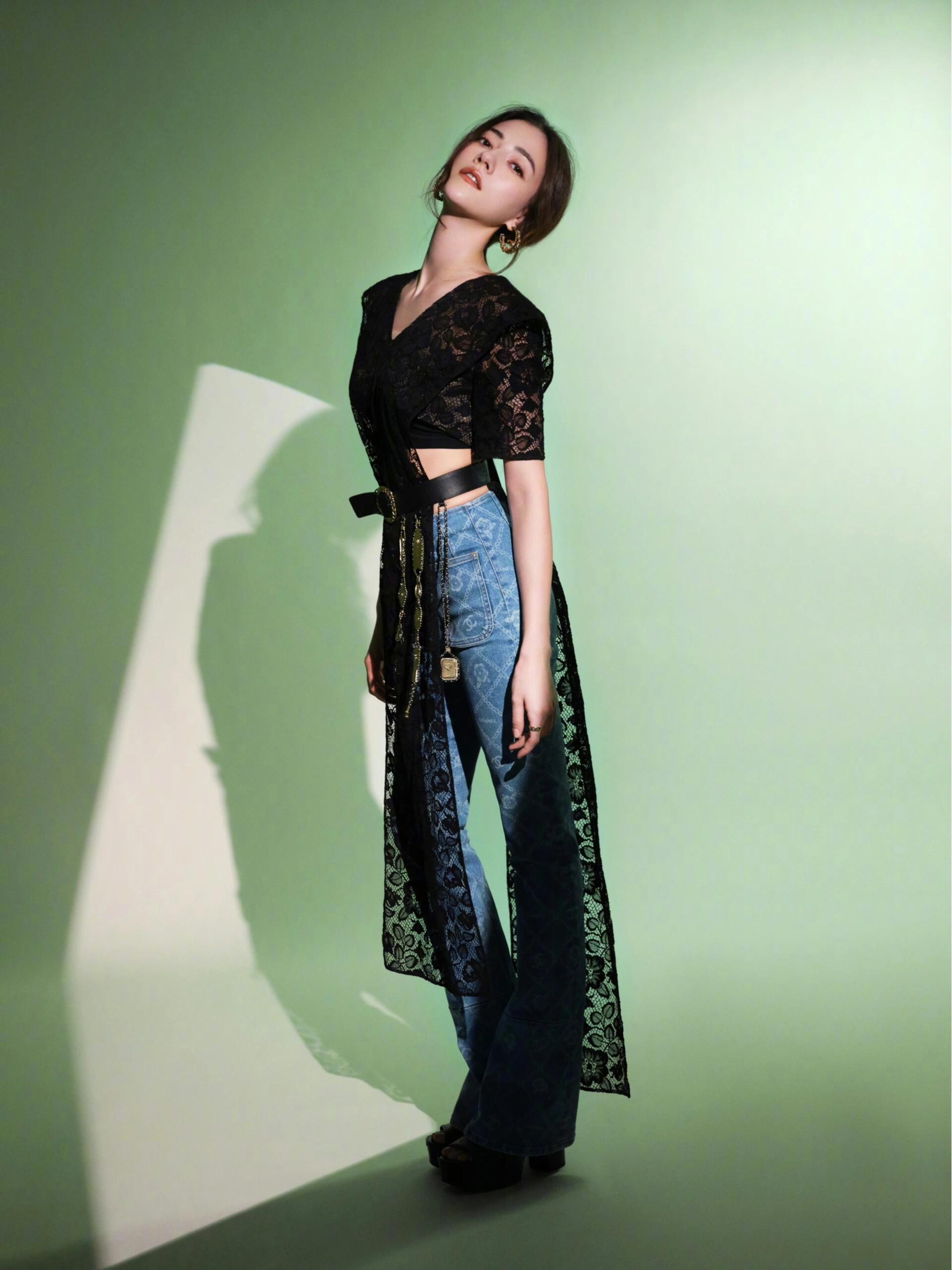 这妲己转世现代了?黑色蕾丝配牛仔,时尚圈的妖风果然与众不同,演技再好,这混搭风我先跪了~