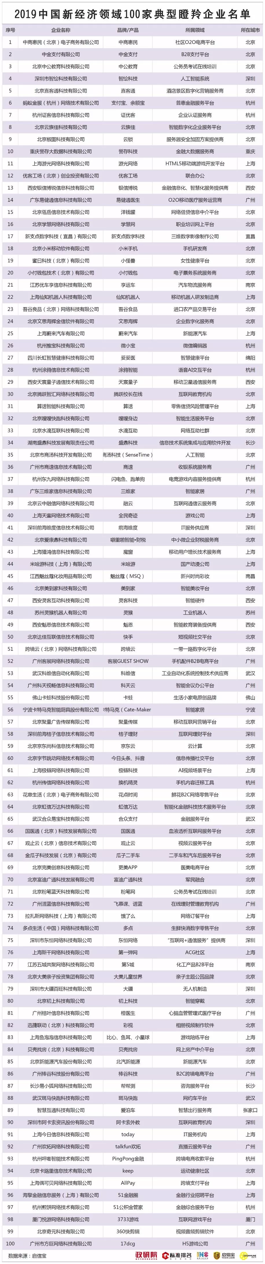 瞪羚企业大部分成长在新经济时代,也通常会成为原创新兴产业的引领者以及传统产业颠覆式变革的引领者。因此,《瞪羚报告》发布机构也将新经济领域的100家典型瞪羚企业进行了罗列。对于部分已经成功上市的瞪羚企业如拼多多、唯品会等不再罗列。这份名单中,既有蚂蚁金服、小米手机、优客工场、蔚来汽车、商汤科技等已经成长为行业独角兽的瞪羚企业,也有爱泊车、keep、北汽新能源、涂鸦智能、水滴互助等正在引领各个领域的瞪羚企业。它们都将是这个新经济时代的领跑者。2019年11月9日-10日,由优客工场与标准排名城市研究院共同主办、螺旋角出品的全球INS大会将在水立方举行。据全球INS大会研究院院长、标准排名城市研究院院长谢良兵透露,《瞪羚报告》中的25057家瞪羚企业全名单届时将在全球INS大会上发布。