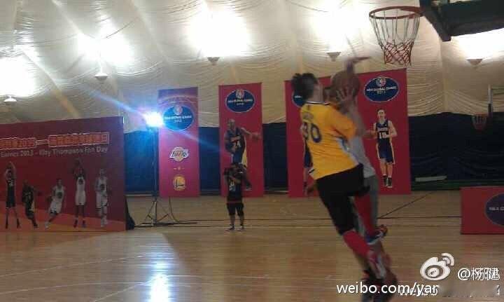 图1和图2: 2013年,克雷同学第一次来,我们一打一,我上进一个篮!