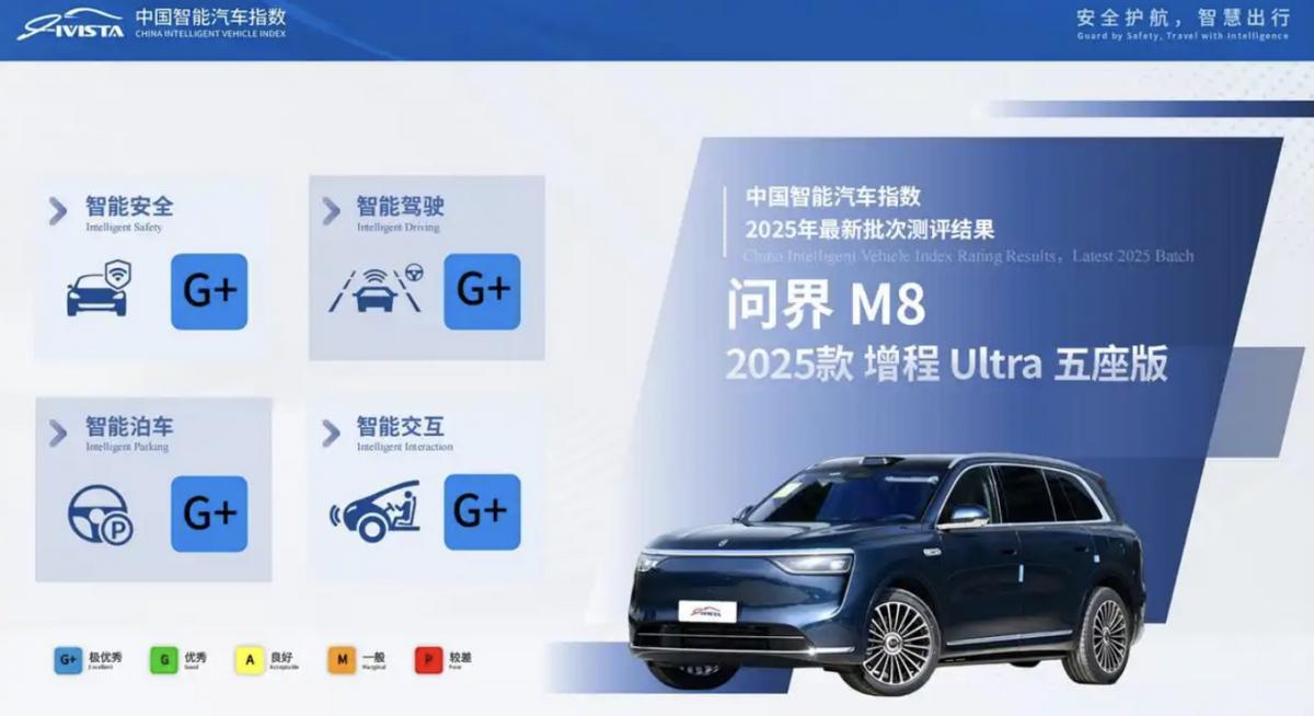 「安全是最大的豪华」,这一理念在问界M8上得到了充分体现。在IVISTA中国智能汽车指数测评中,问界M8在智能安全、辅助驾驶、智能交互等核心维度均斩获最高等级G+评价。