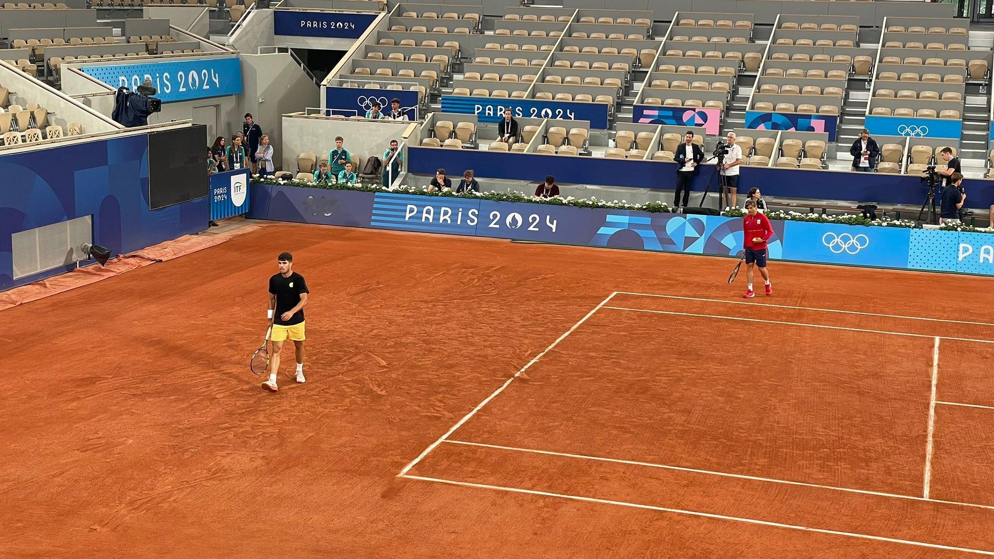 新科法网冠军阿尔卡拉斯重返菲利普-夏蒂埃球场,开启了今年巴黎奥运会的第一练,未曾想纳达尔意外出现并“暗中观察”(bushi[并不简单]),随即豆子与费雷尔和阿卡都进行了交流[握手]