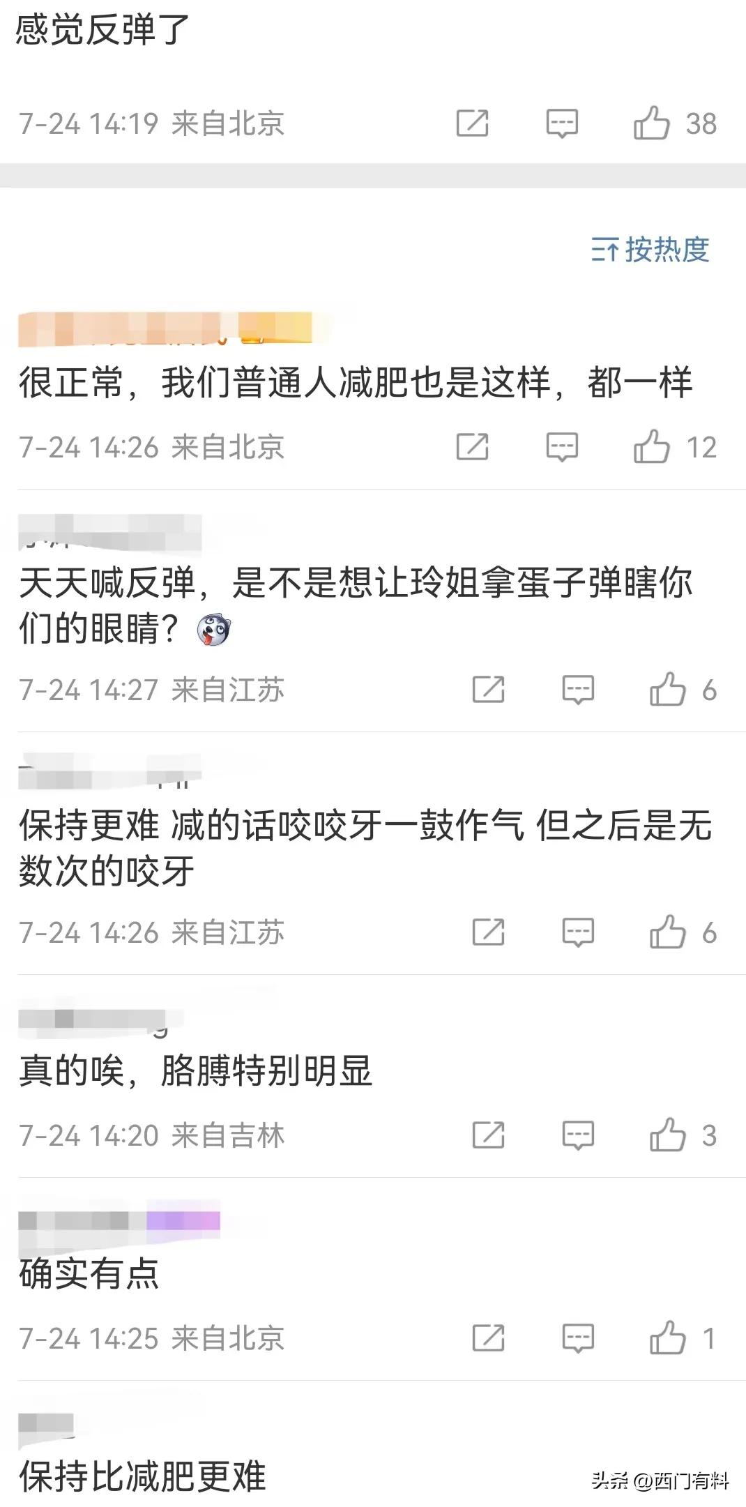 贾玲体重回弹,网友猜测有135斤[笑哭] 不过话说回来,瘦下去容易长久保持确实难,之前训练太严,恢复正常以后胖回来一点也是正常的,以后肯定是生活化的状态! 也有网友表示她都这么牛了,胖点瘦点都无所谓了! 还有网友说贾玲最近胖了是因为在湖南录百变五 侠 那个节目,瞿颖带着她吃吃吃胖的[我想静静]