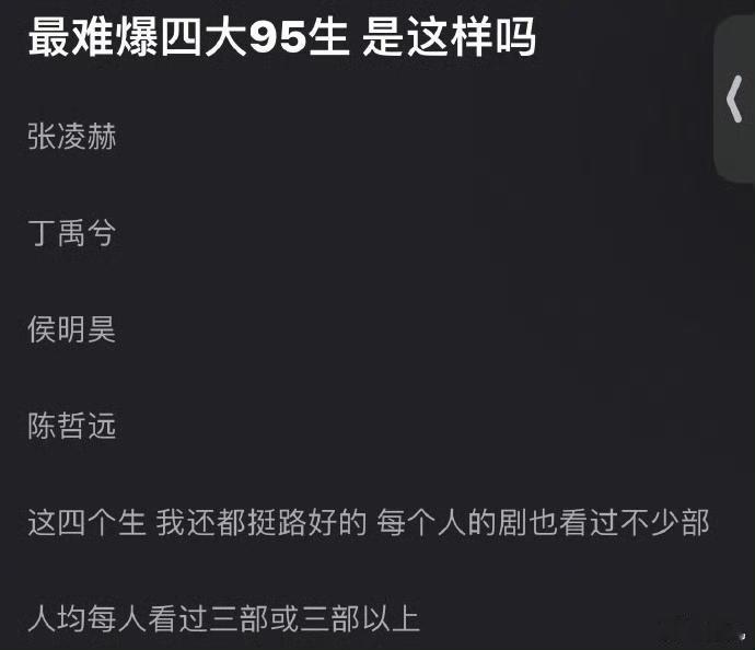 网评内娱最难爆四大95生:张凌赫 丁禹兮 侯明昊 陈哲远大家认同吗?#