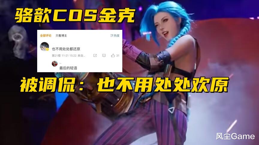 很有意思的是,这段评价金克斯的配音人,就是骆歆,这也算是一个小彩蛋,观众和粉丝,对于骆歆金克斯COS的评价,基本上都是:超级还原,因为骆子姐本来就比较瘦,身材也跟金克斯差不多,各种服饰、道具、发色,也都大差不差,最关键的是,金克斯的双A,也被骆歆给还原了。