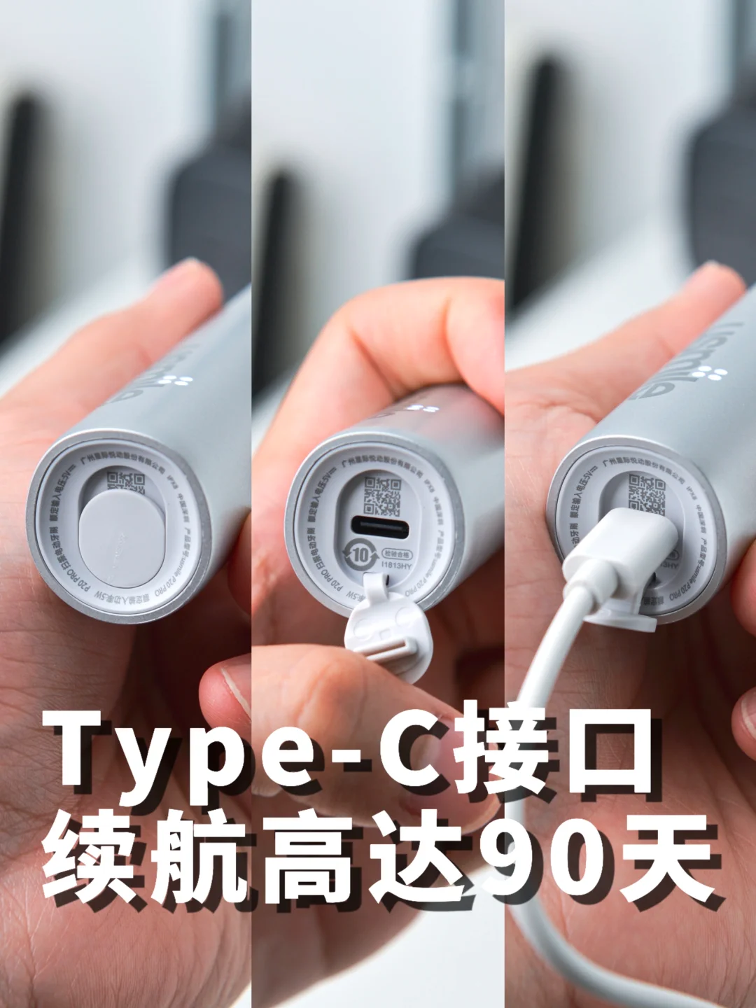 ▫关于续航也是亮点之一,Type-C的接口,出门也无需再带一条专用充电线了,单次续航高达90天,再也不用担心没电的问题了,对比之前用过4-5天就要冲一次电的牙刷而言,这款的续航能力给我的体验感要好很多!