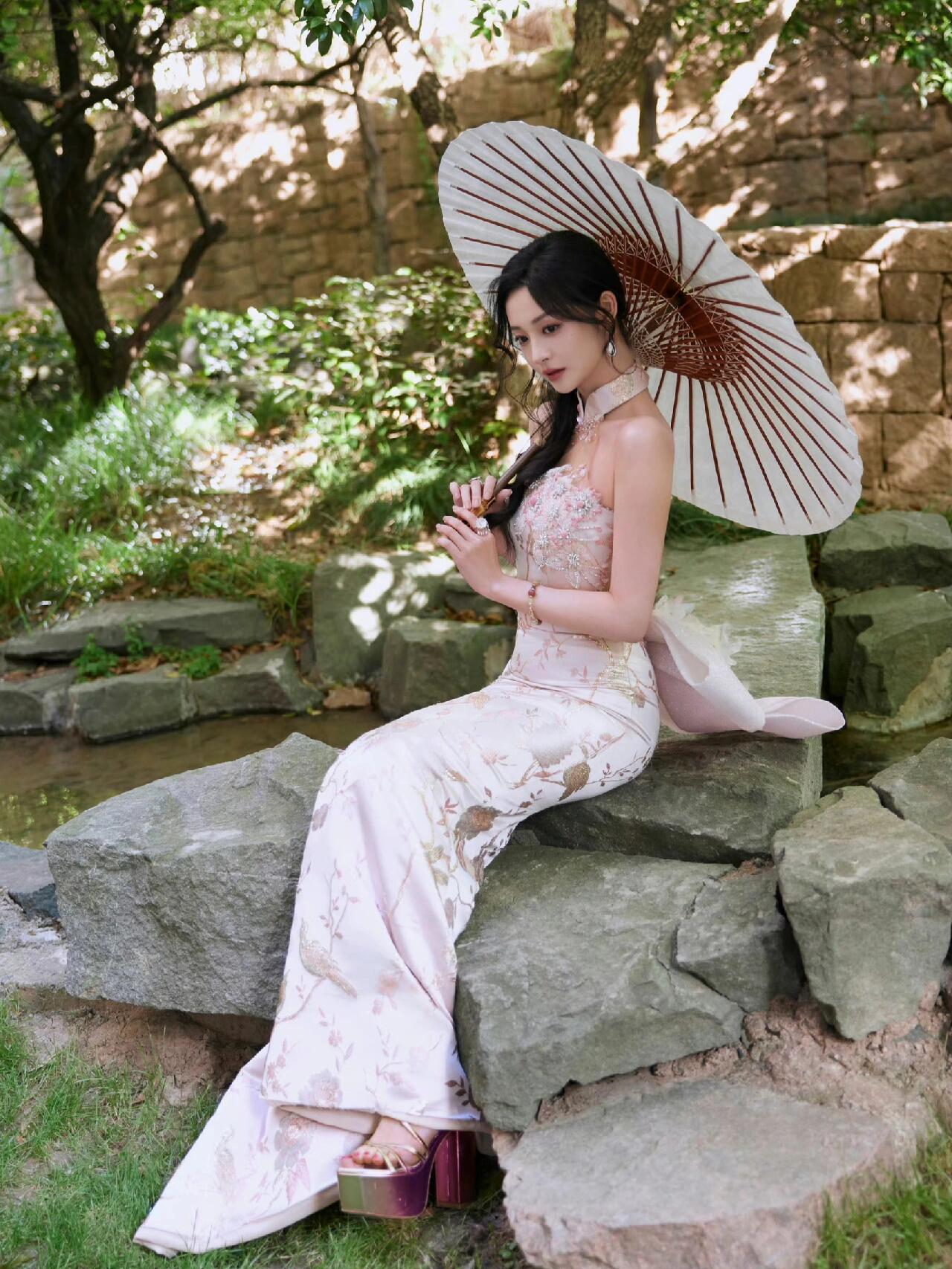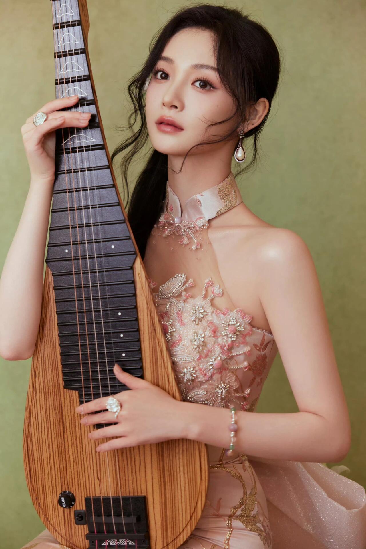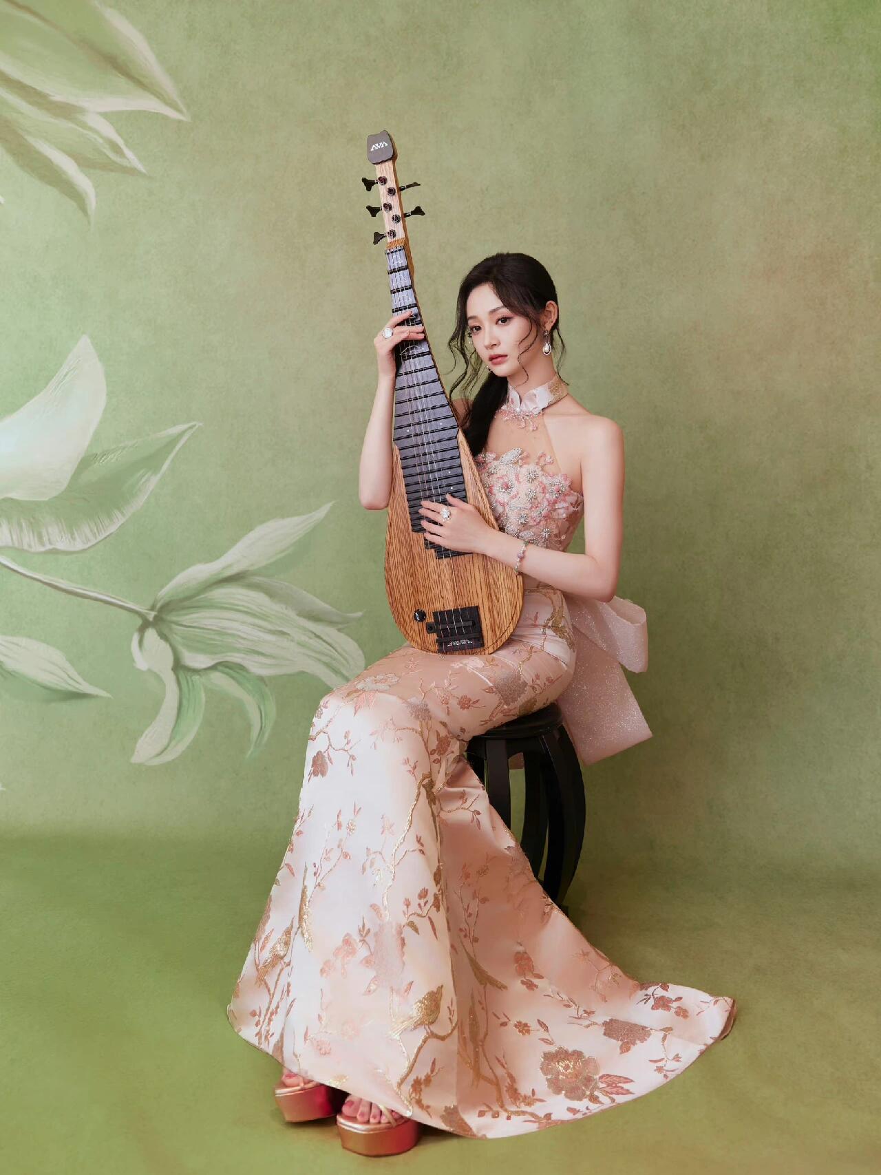 穿旗袍弹琵琶 周洁琼的新中式穿搭真漂亮! 她的身材和气质好适合新中式
