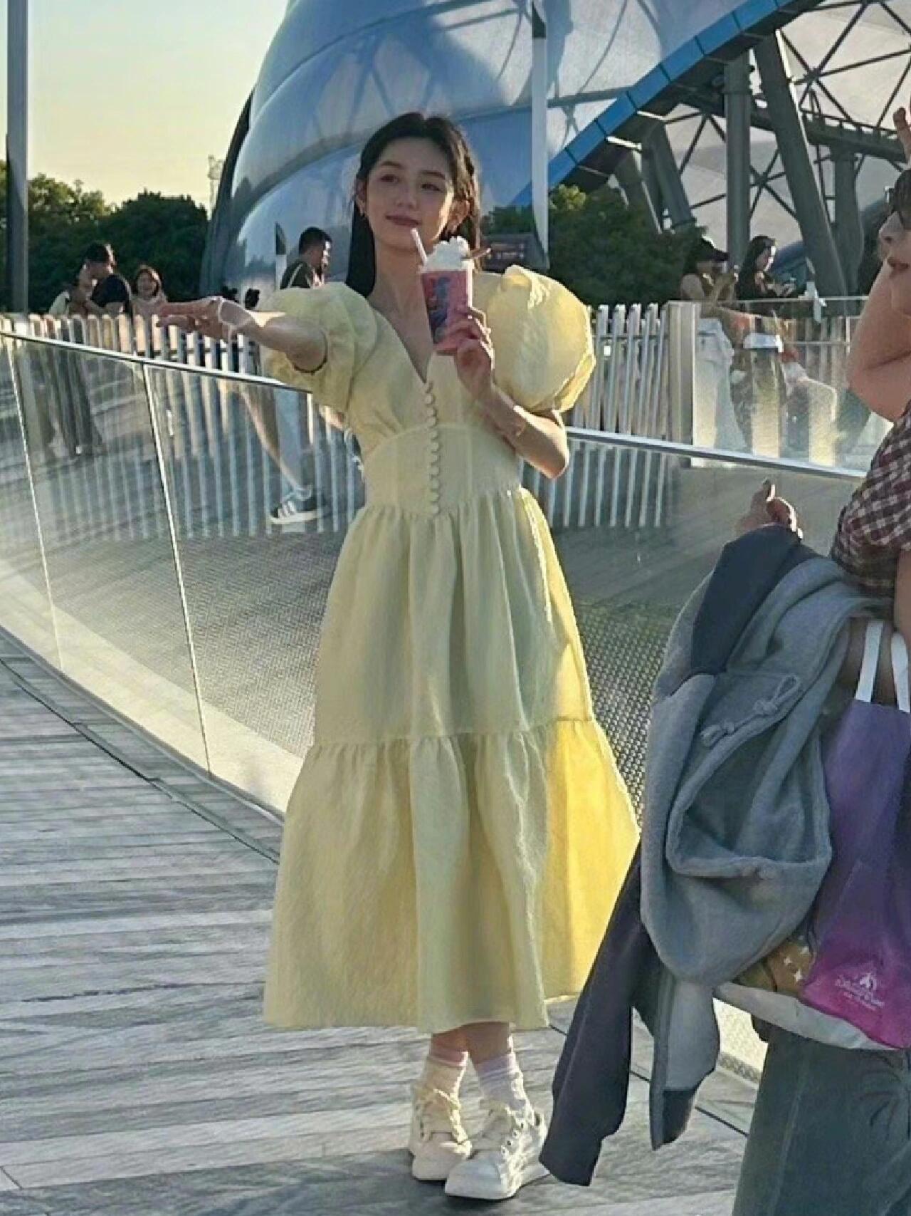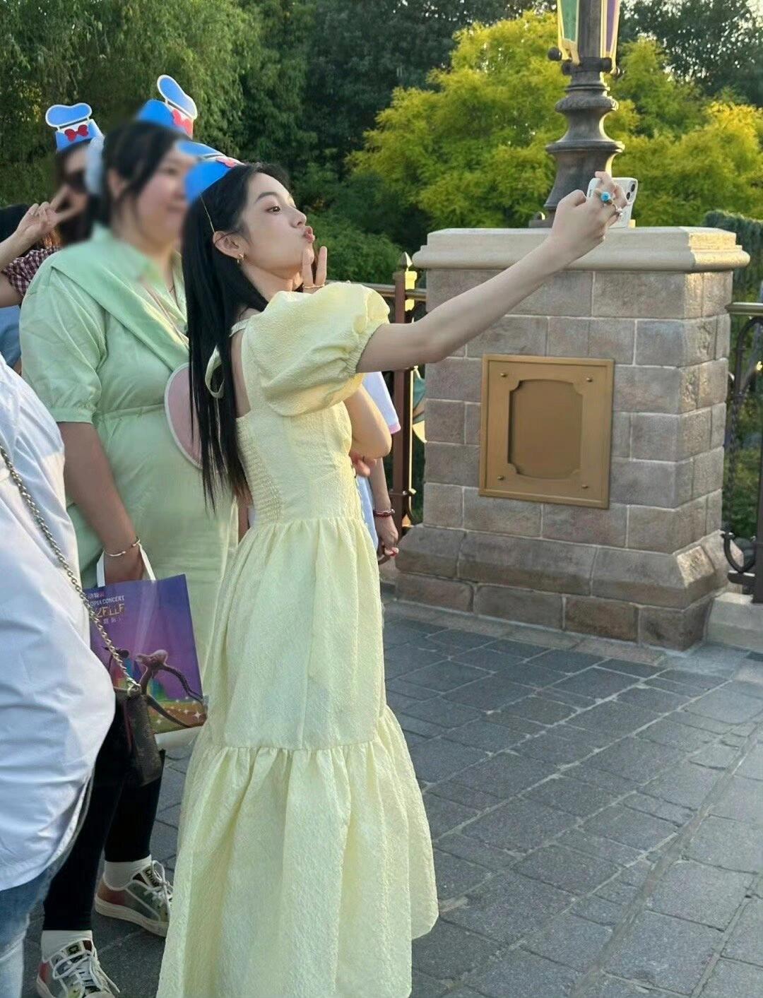 在迪士尼偶遇周也 随手一拍都好好看! 迪士尼偶遇大明星周也,好羡慕呀 椰子是不是提前庆祝生日呀,裙子好看