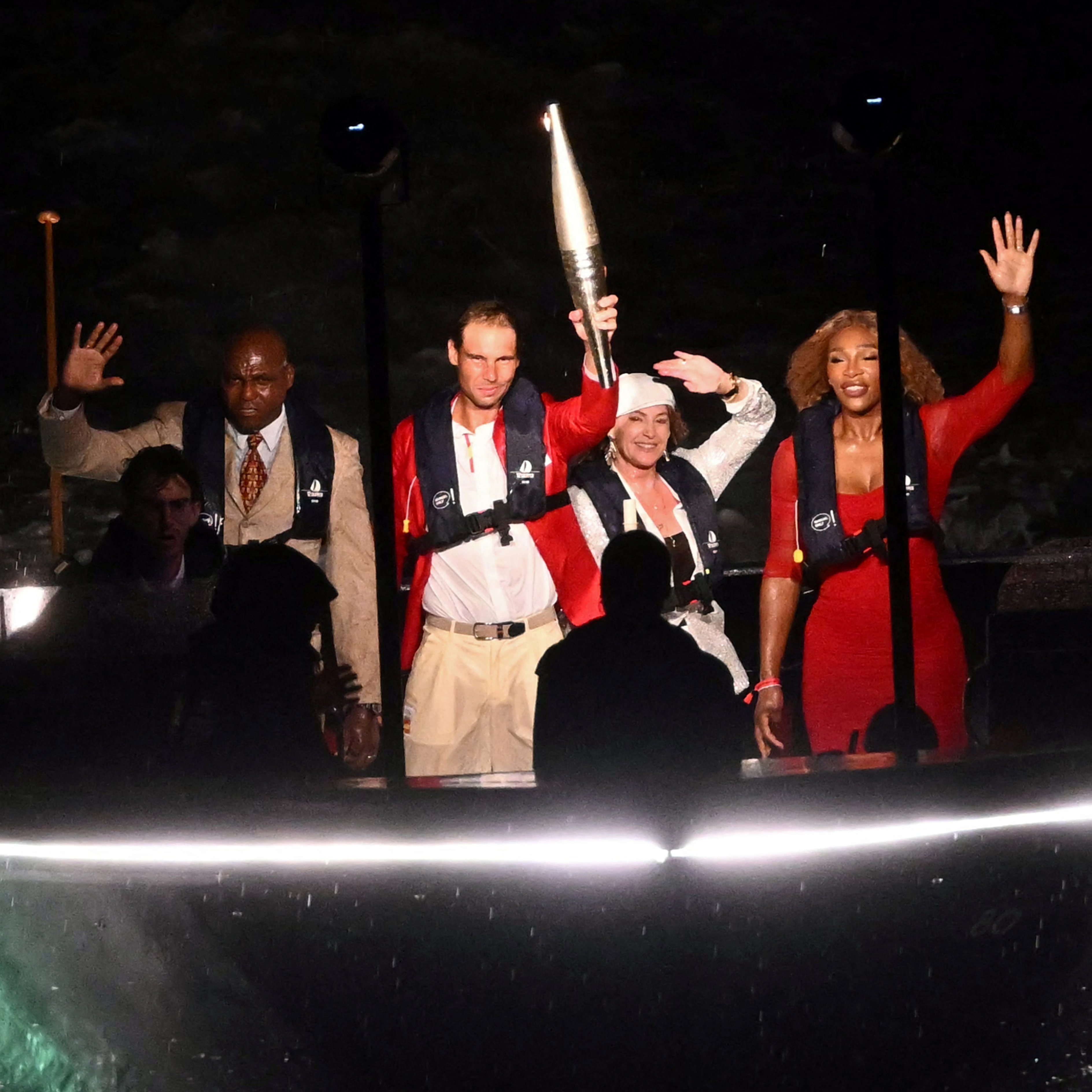 #巴黎奥运开幕式# 负责最后一棒乘船传递奥运会火炬的四人小分队在埃菲尔铁塔前留下了珍贵的合影,他们分别是西班牙网球天王纳达尔、罗马尼亚体操名将科马内奇、美国网坛传奇小威廉姆斯和美国田径名宿卡尔-刘易斯,体坛跨界神仙合体名场面[握手][good][打call]#2024年巴黎奥运会#