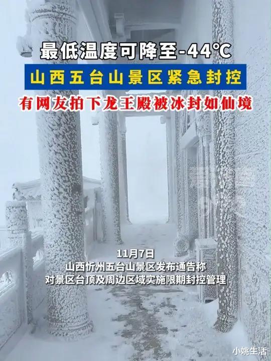 “咔嚓——”一声快门,网友@阿瞒的五台山行记把冬天按下了暂停键——龙王殿被冰封了。2025年1月3日,一场“跨年寒潮”让五台山气温骤降至-28℃,加上前期冻雨,整座山峰一夜之间变成巨型冰雕。位于海拔1700米的龙王殿最为出圈:黄琉璃瓦被厚冰覆盖,飞檐挂着两米长的冰溜子,殿前香炉冻成“冰鼎”,远远望去,仿佛《西游记》里的凌霄宝殿误入凡间。