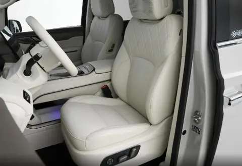 除此之外,车内的许多舒适性配置也非常出色,进一步提升了对家庭消费者的吸引力。整个车辆采用NAPPA真皮材质座椅,前后三排座椅的设置均参考了人体工程学原理,为驾乘人员提供更好的乘坐体验。前排和第二排座椅均支持电动调节功能,可根据实际需求进行个性化调整,并配备加热、通风、按摩、主驾驶等舒适性功能,座椅的舒适程度足以满足大部分驾乘人员的实际使用需求。车内还配备了三区智能调温空调系统,拥有空气净化器、PM2.5过滤装置以及负离子发生器等实用配置,可对车内空气进行实时过滤,确保整体环境清新健康。此外,车内配备了一个12.5英寸的车载冰箱系统,支持制冷、制热、保鲜三种模式,能够满足大部分消费者日常出行的需求。