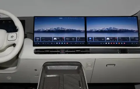 车辆前排配备了多块大屏,包括方向盘前方的12.3英寸全液晶仪表盘、中控台中间位置的15.6英寸悬浮式中控大屏,以及副驾驶位置的15.6英寸大屏,两块15.6英寸大屏的分辨率均达到2.5K,满足驾乘人员对画面清晰度的需求,也为信息和娱乐服务提供了更好的体验。此外,整个车机系统还配备了HUD抬头显示功能,可以为驾驶者投射出一块26英寸的HUD显示区域,将关键信息直接显示在视线前方,驾驶时无需频繁低头查看,大幅提升了车辆的安全性能。