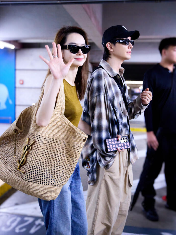这画面很养眼呀。戚薇穿了一件咖啡色的小背心,搭配蓝色的牛仔长裤,清凉时尚又显高,这大长腿很让人羡慕。她背的这只米色的编织包包不错,百搭时尚