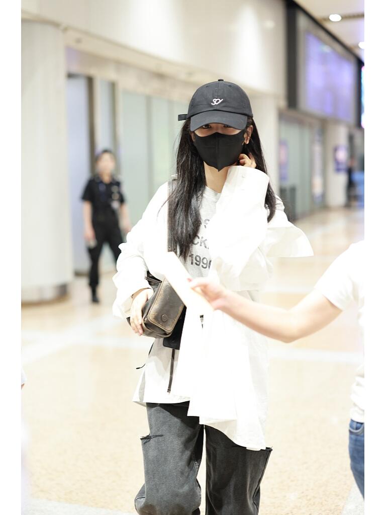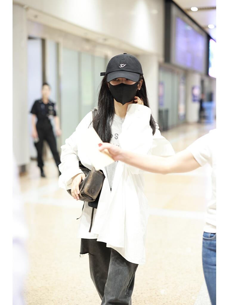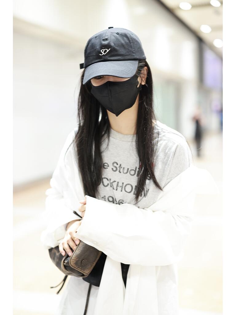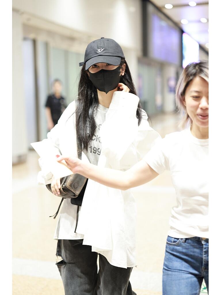 一件白色的大翻领外套,内搭一件白色的T恤,搭配一条黑色的直筒休闲裤。简单舒适。
