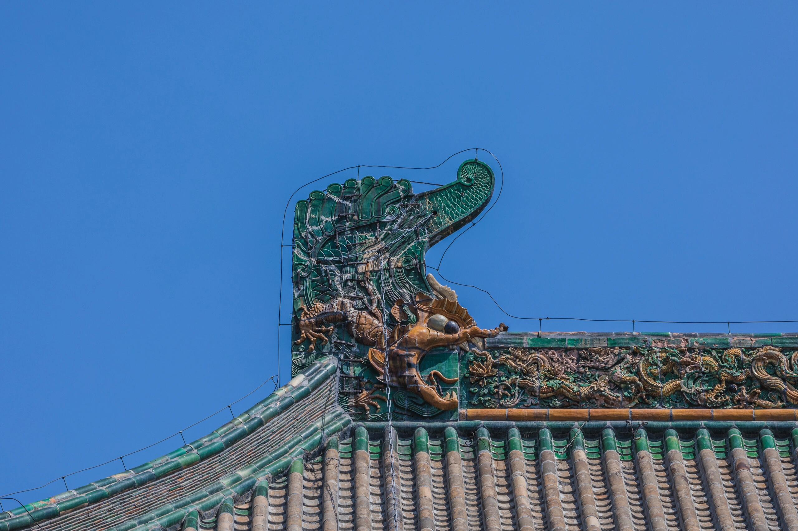 站在德宁之殿前,很难不被它的宏大所震撼。重檐之下,飞檐斗拱的每一处细节都经得起推敲;月台上,99只石狮组成的阵列透着威严;殿内,粗壮的梁柱支撑起开阔的空间。这座大殿没有紫禁城宫殿的金碧辉煌,却以一种质朴的力量,展现着元代建筑的雄浑大气。它不像江南园林那般讲究曲径通幽,而是以堂堂正正的布局,诠释着北方建筑的豪迈。