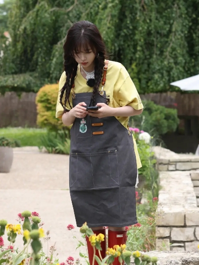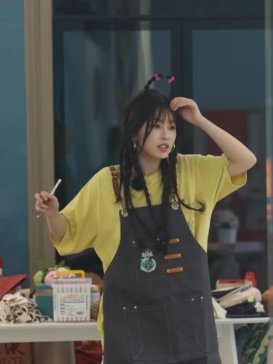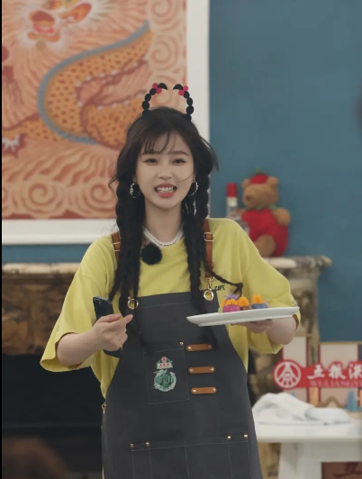 虞书欣工作室公开一组虞书欣的综艺录制花絮,照片里的虞书欣扎着双麻花辫,戴着围裙可爱灵动