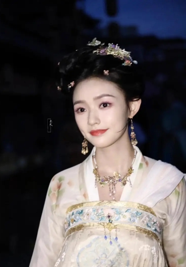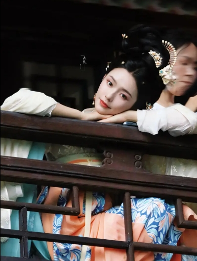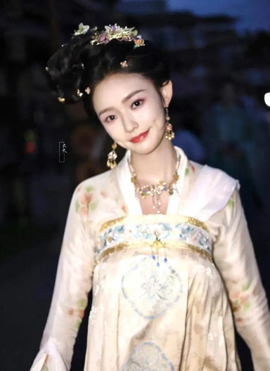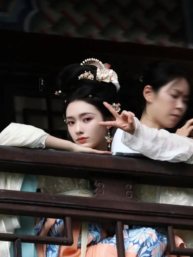林允穿素色古装清纯温柔 对镜比耶表情灵动娇俏