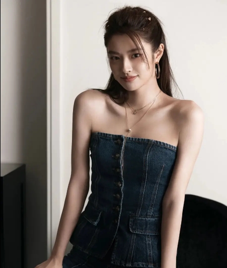 徐若晗穿牛仔抹胸裙洋溢青春 五官犀利冷艳有个性