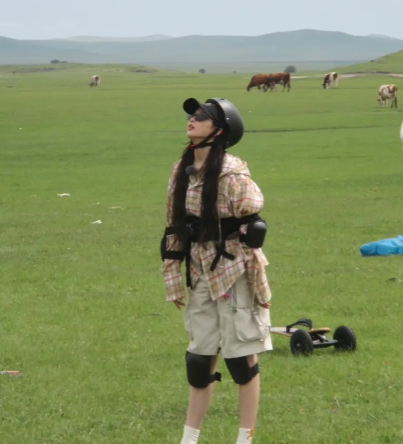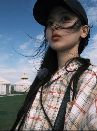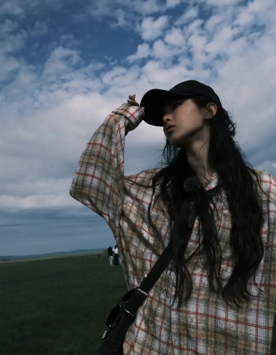 杨超越一组草原游玩照,照片里的她穿着格子衬衣,自在如风,潇洒松弛。