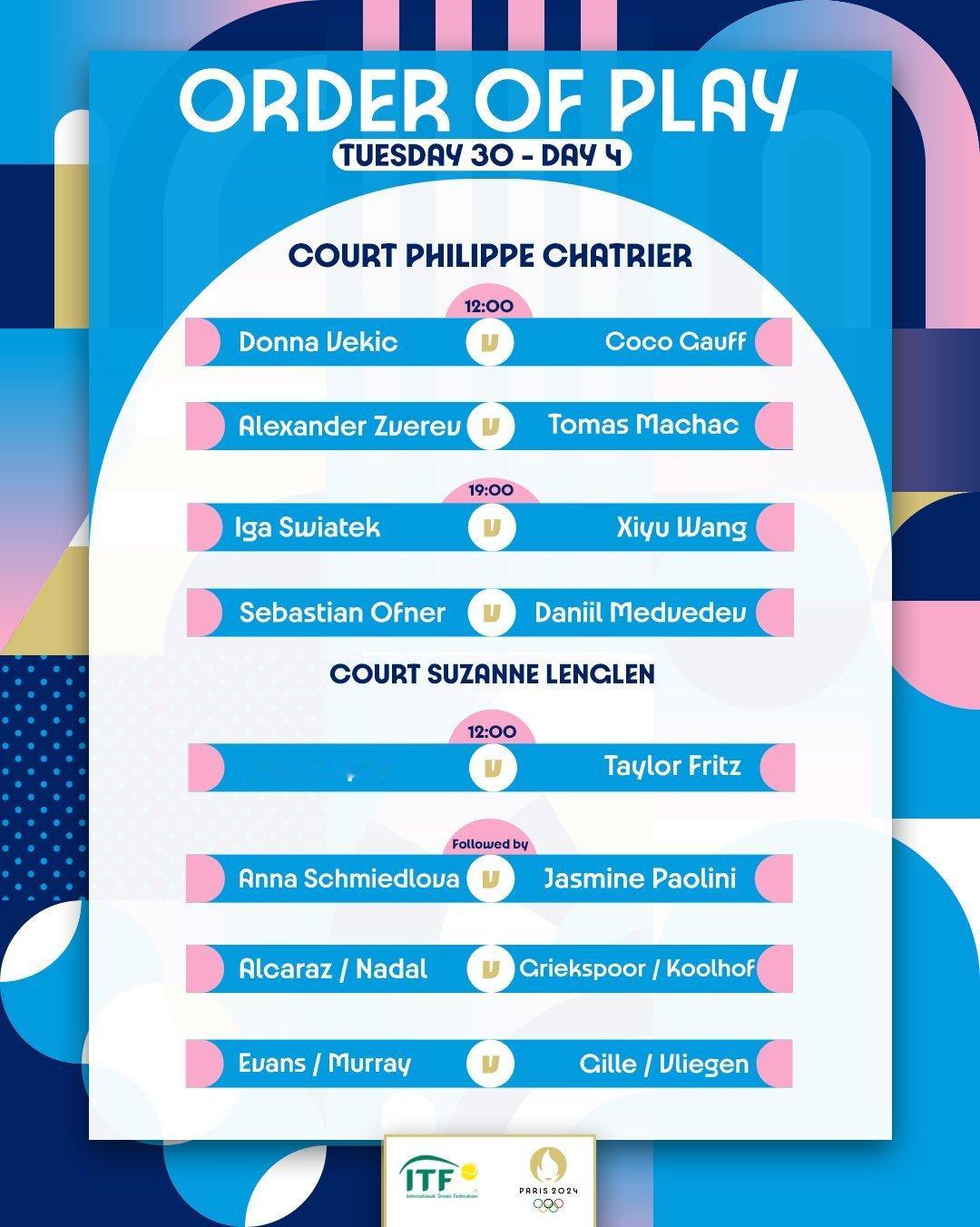 赛程预告:昨天在单打赛场出局的纳达尔,今天将继续在双打赛场亮相,他与阿尔卡拉斯的组合将会在苏珊-朗格伦球场的第三场出战格里克斯普尔/库尔霍夫,比赛开球时间大概在今晚九点半左右,豆子阿卡加油💪#2024年巴黎奥运会#