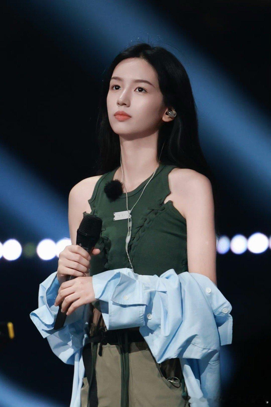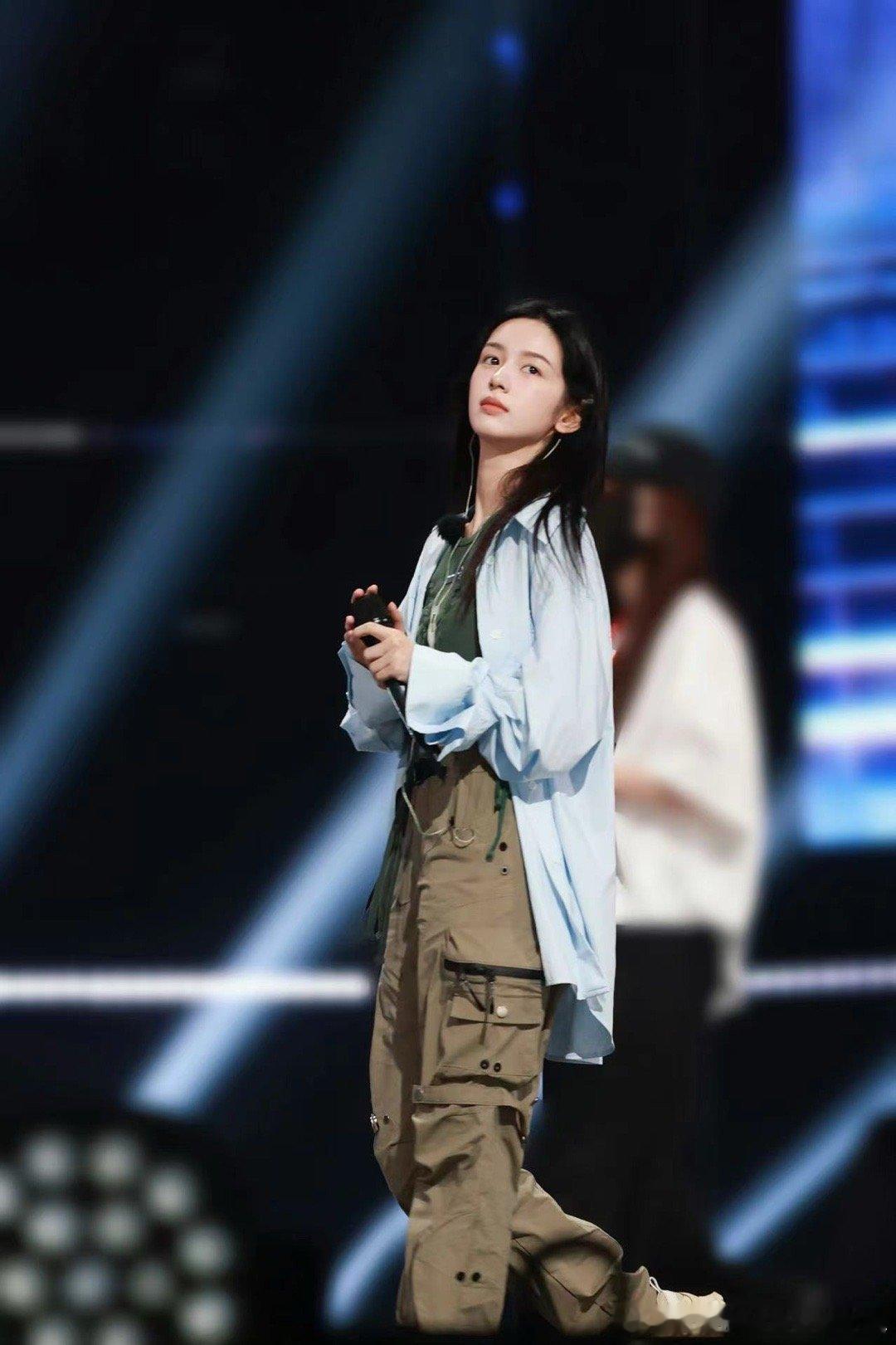 #周也半脱衬衫# 周也参加《城市捉迷藏》演唱会彩排,她的造型充满了时尚张力!军绿色背心和工装裤展现出力量感,半脱的蓝色衬衫则释放出随性的魅力,期待今晚舞台上的她!