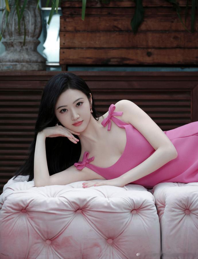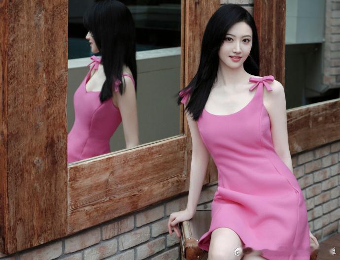 #景甜U领吊带粉裙##景甜人间芭比# 景甜穿着这件粉裙,U 领吊带上的蝴蝶结如同