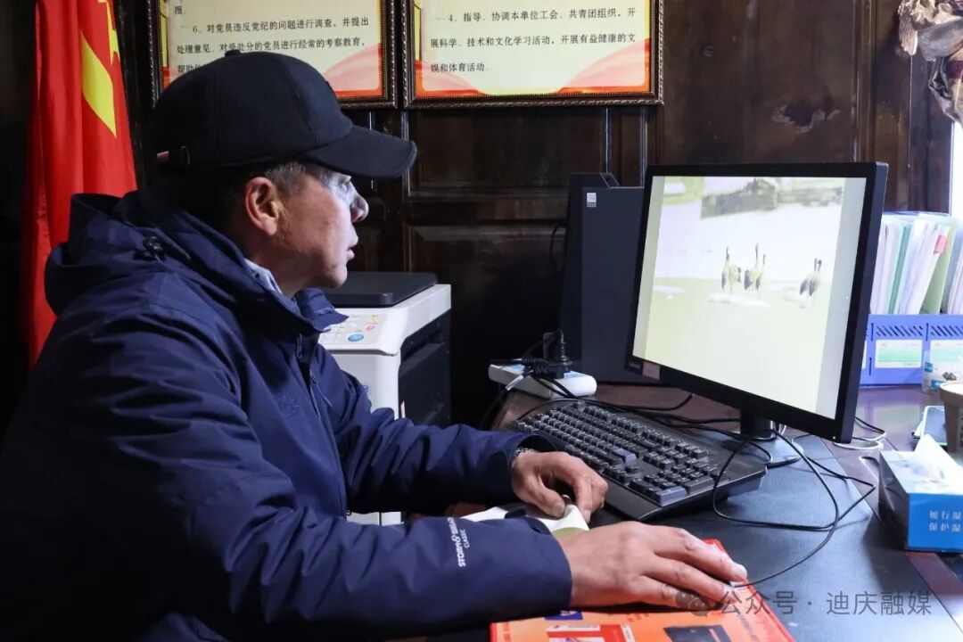 专业的判断来自日复一日的观察与积累。9年前,陈志明初到管护局工作时,还是个分不清鸟类的“外行”。他坦言:“当时我连黑颈鹤、灰鹤这些常见的鹤类都分不清,要保护它们无从谈起。”从此,陈志明开启了自己的求知之路,他拜访当地藏族老人,听他们讲述黑颈鹤的故事,学习观鹤智慧。向管护局的同事虚心请教,他抓住每一次专家学者到纳帕海考察、做课题的机会向他们请教学习知识。他还通过网络和书本自学,将所学所感运用到日常观测的实践中……9年光阴,3000多个日夜,他的足迹遍布了整个湿地。