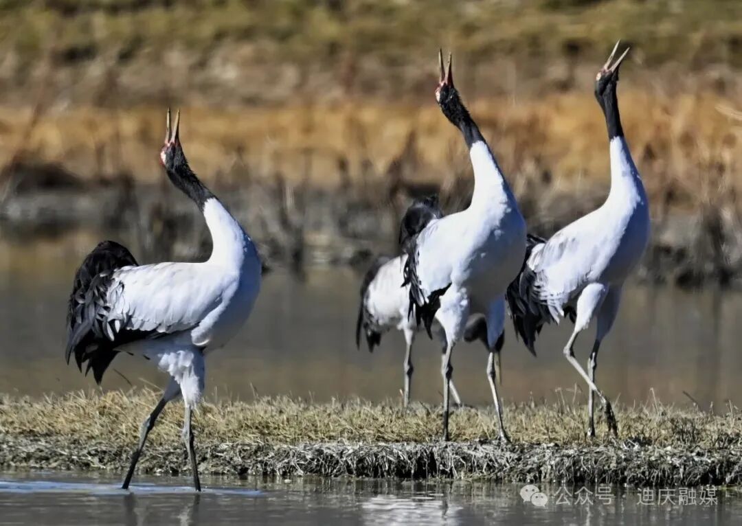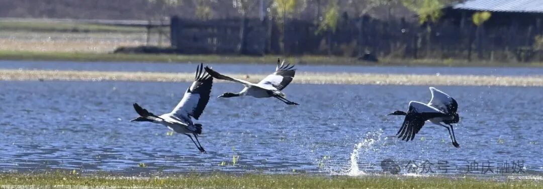 风雪渐停,朝阳洒在纳帕海的水面上泛起粼粼金光。鹤群在沼泽中展开灰白的羽翼,发出悠长的鸣叫声。巡护员们站在远处的青稞架后,目光始终追随着它们的身影,如同守望归家的游子,他们的坚守与候鸟常年不变的迁徙节律,早已共鸣成一曲和谐、永恒的生命之歌。