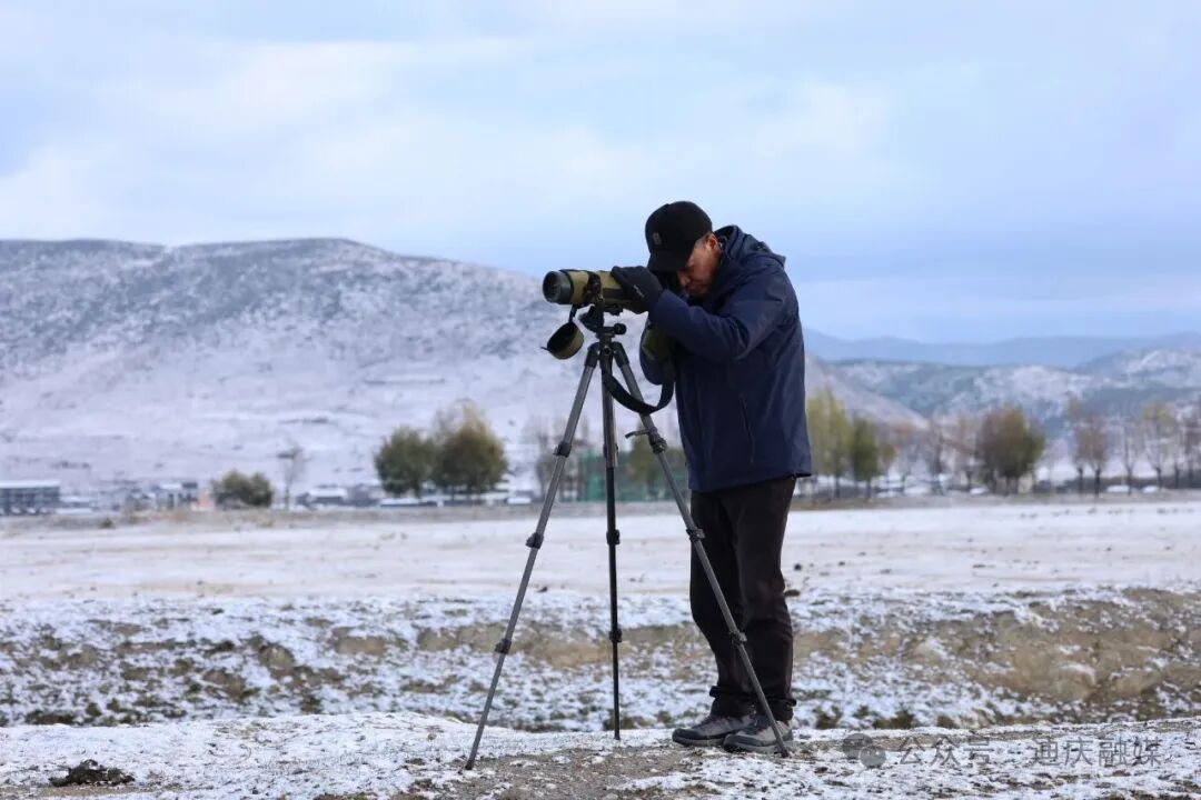 当清晨的第一缕微光尚未穿透云层,香格里拉市纳帕海湿地如同一幅水墨长卷,静谧中蕴藏着生机。草甸中,一位身着深蓝色冲锋衣的身影踩着积雪,熟练地架起相机,屏息凝望远处成群翩跹的黑颈鹤。他就是纳帕海省级自然保护区管护局原高级工程师陈志明,去年已经退休的他,因为对这份事业难以割舍的热爱,以一名志愿者的身份重新回到这片熟悉的地方,继续鸟类监测与保护工作。