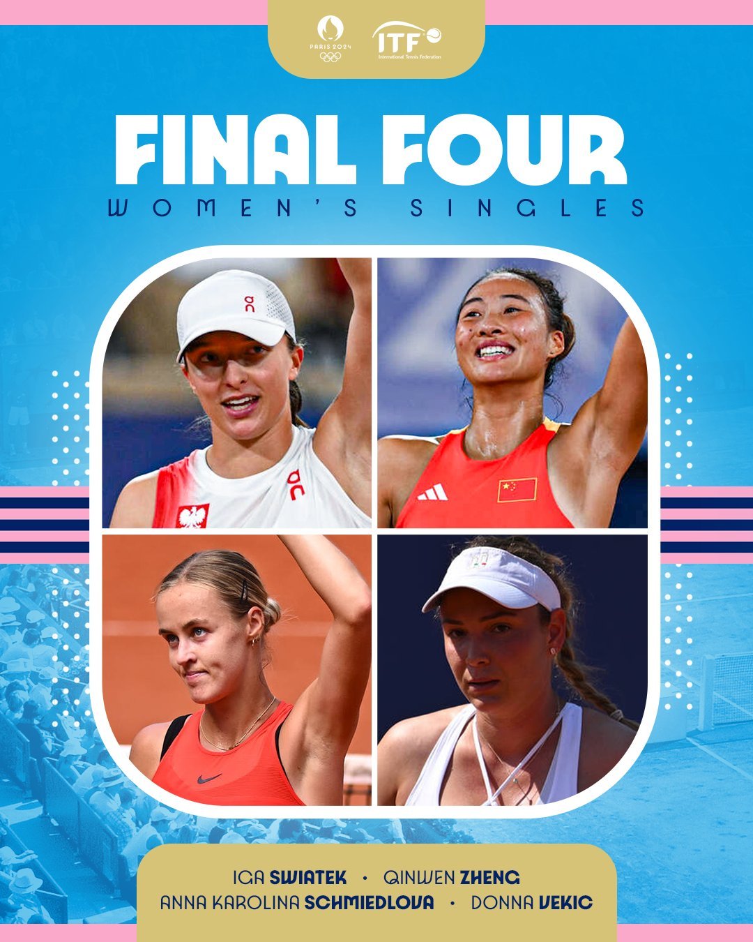 #2024年巴黎奥运会# 巴黎奥运会女单四强对阵:
