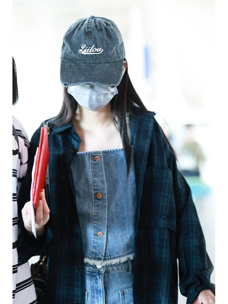 她穿了一件黑色格子的衬衫外套,内搭牛仔小背心,配一条颜色和小背心一样的牛仔阔腿裤,脚上穿双小白鞋。简单休闲又随性自在。还蛮青春的。