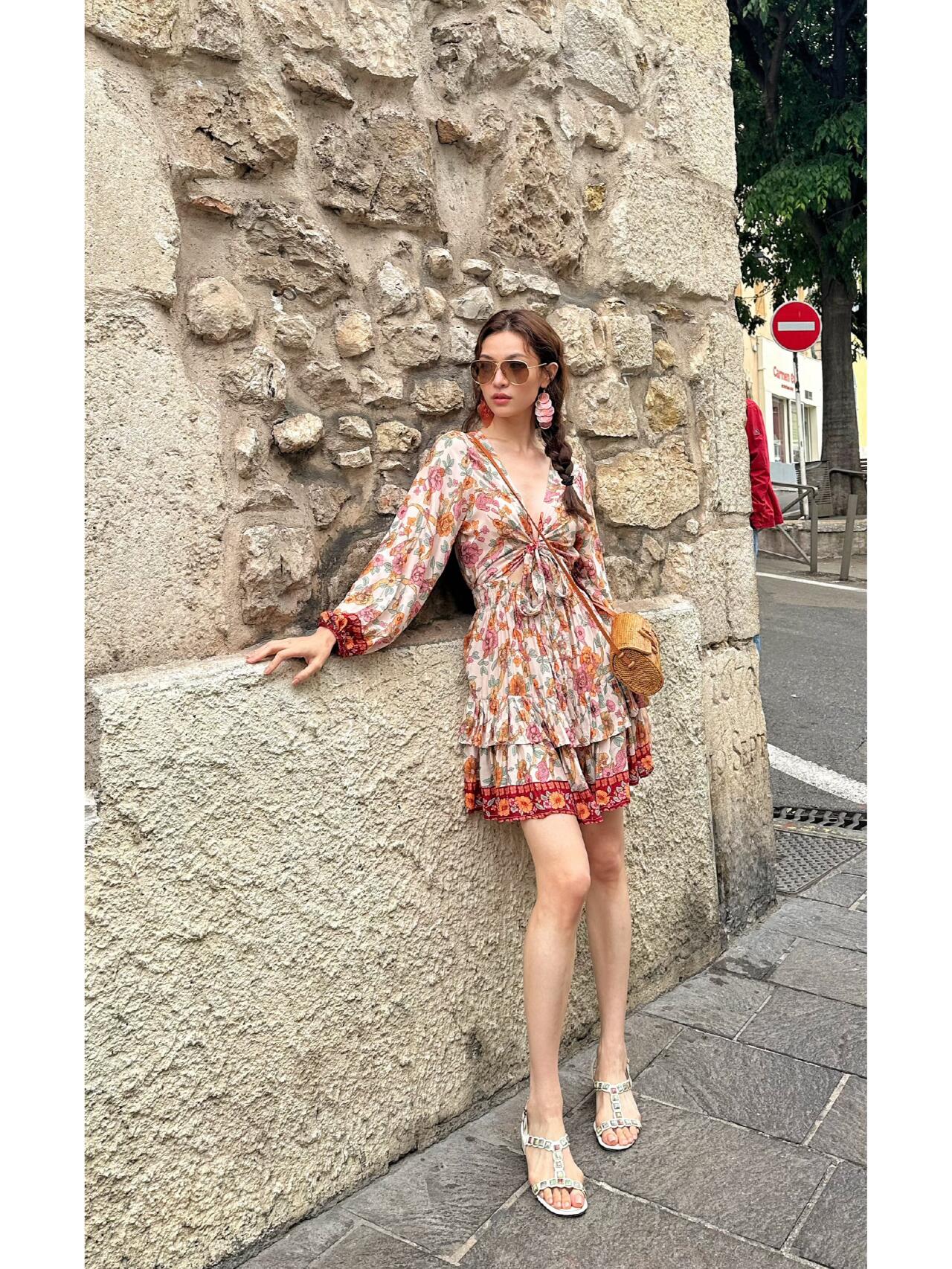 钟楚曦这身材绝了,红唇艳丽,穿花裙简直是风情本人!