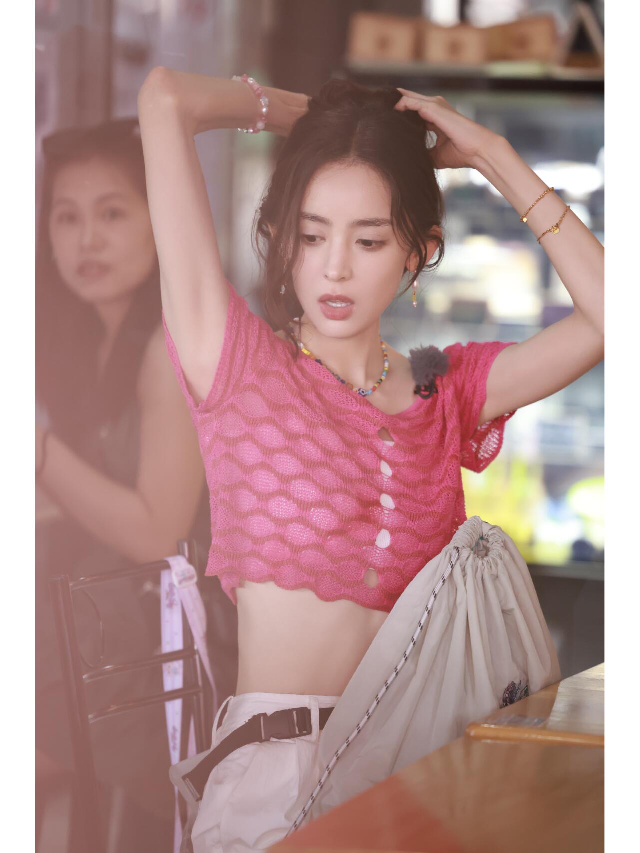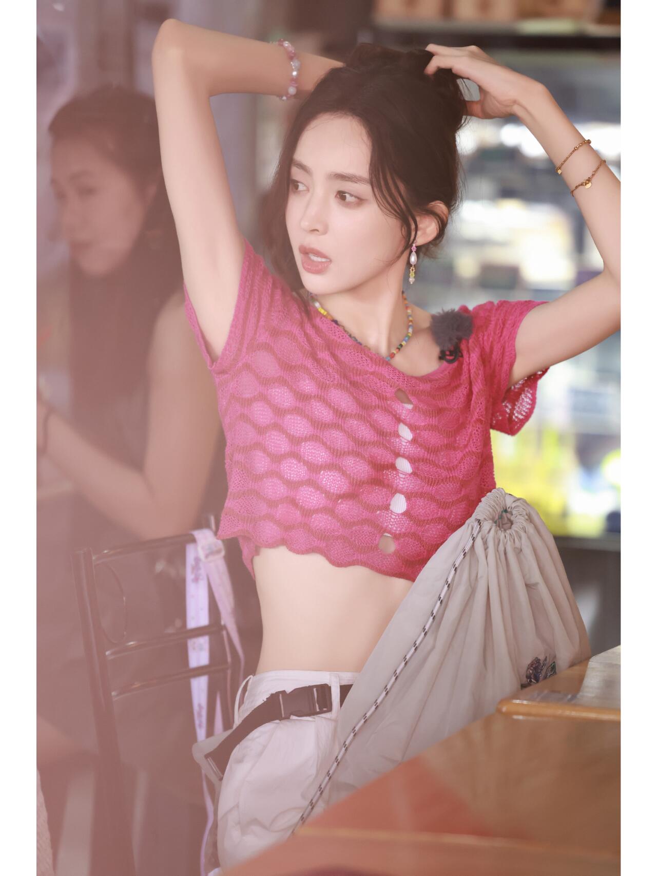 这红配白,甜是甜,但露腰针织衫就别学了,冻龄仙女专属
