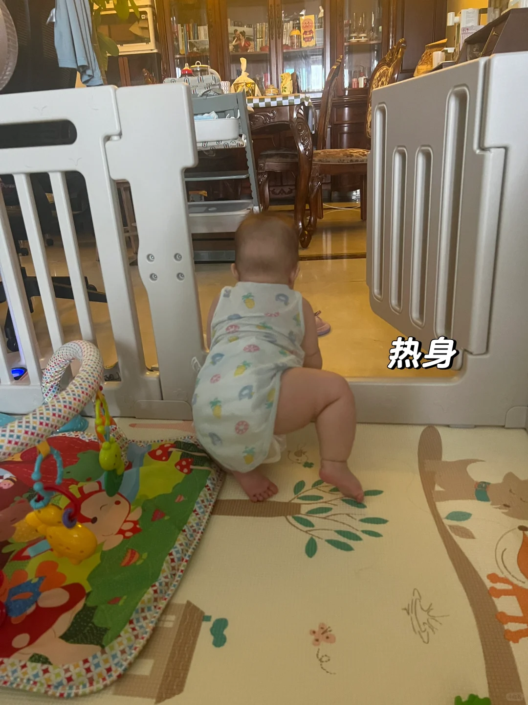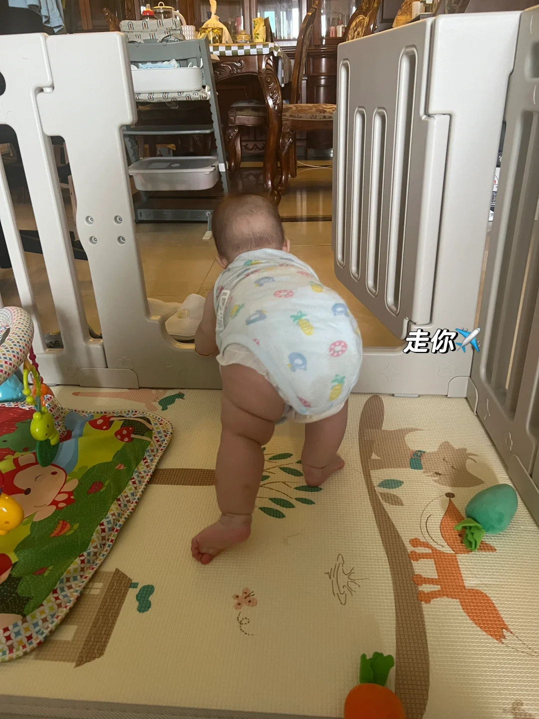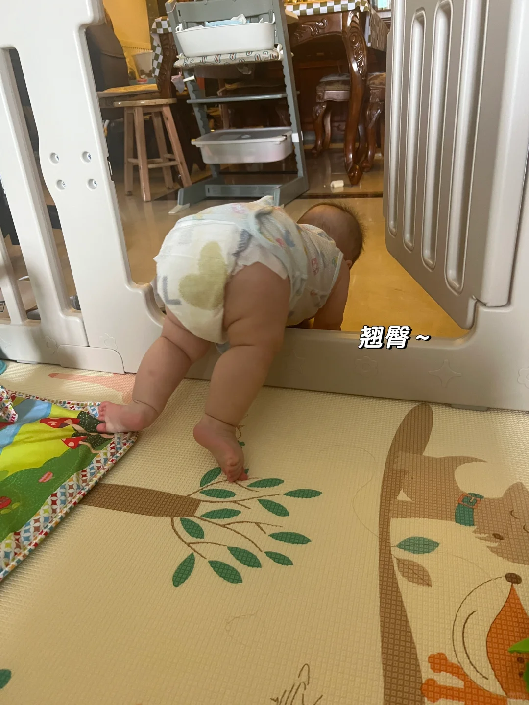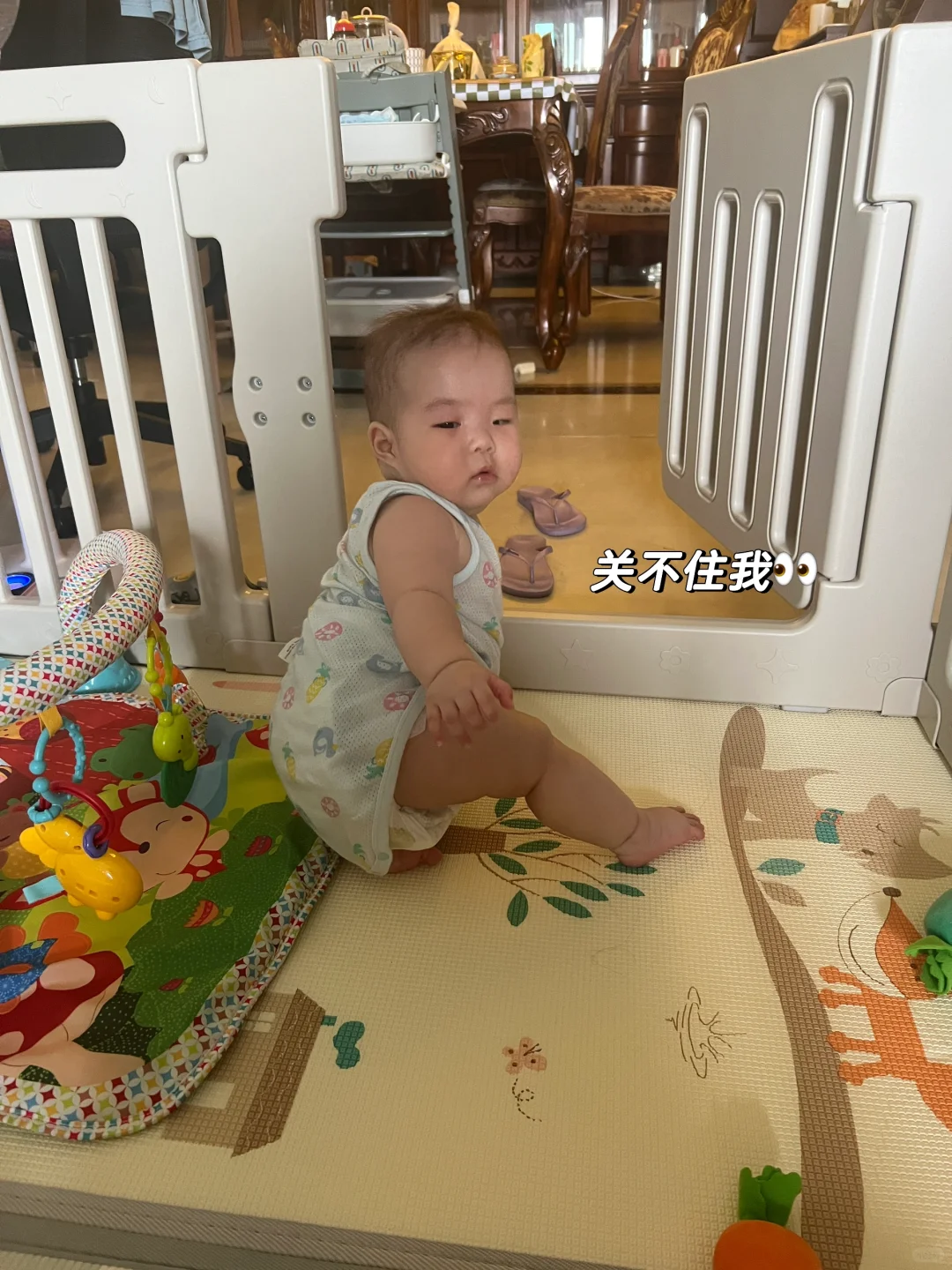 我家大运动发展飞速,各种翻爬坐站,赶紧安排了围栏,防止她磕碰~结果人家不乐意,趁不注意就开始越狱了~这核心力量比老母亲都强,服了[失望R]