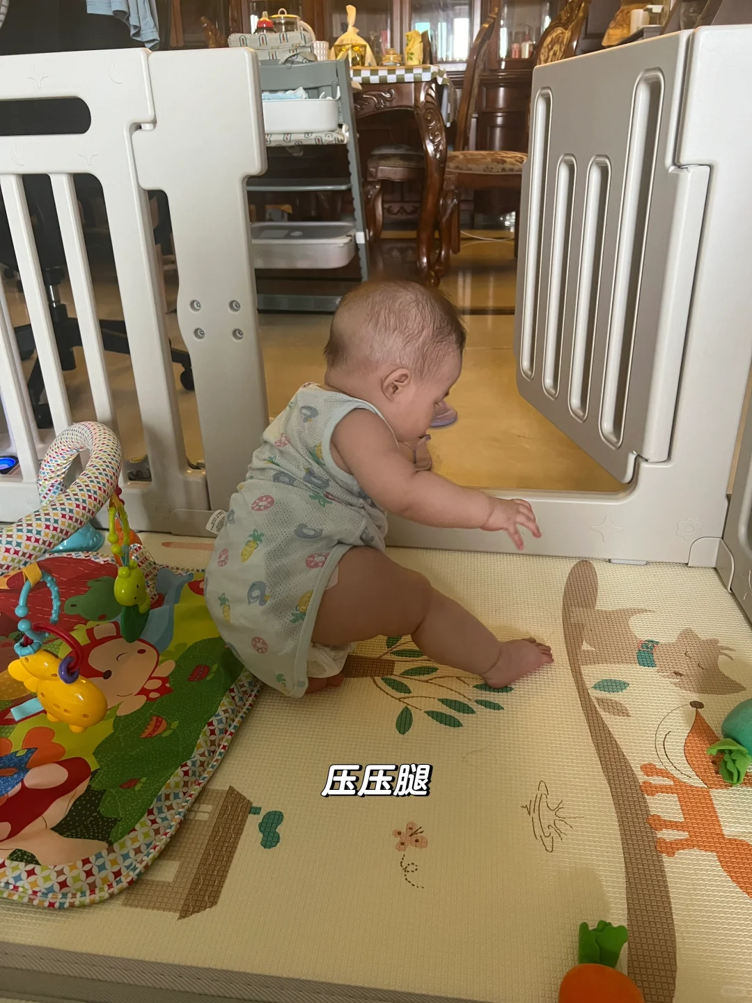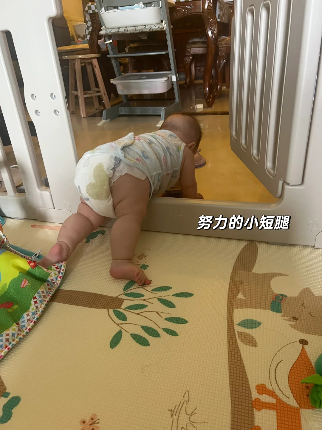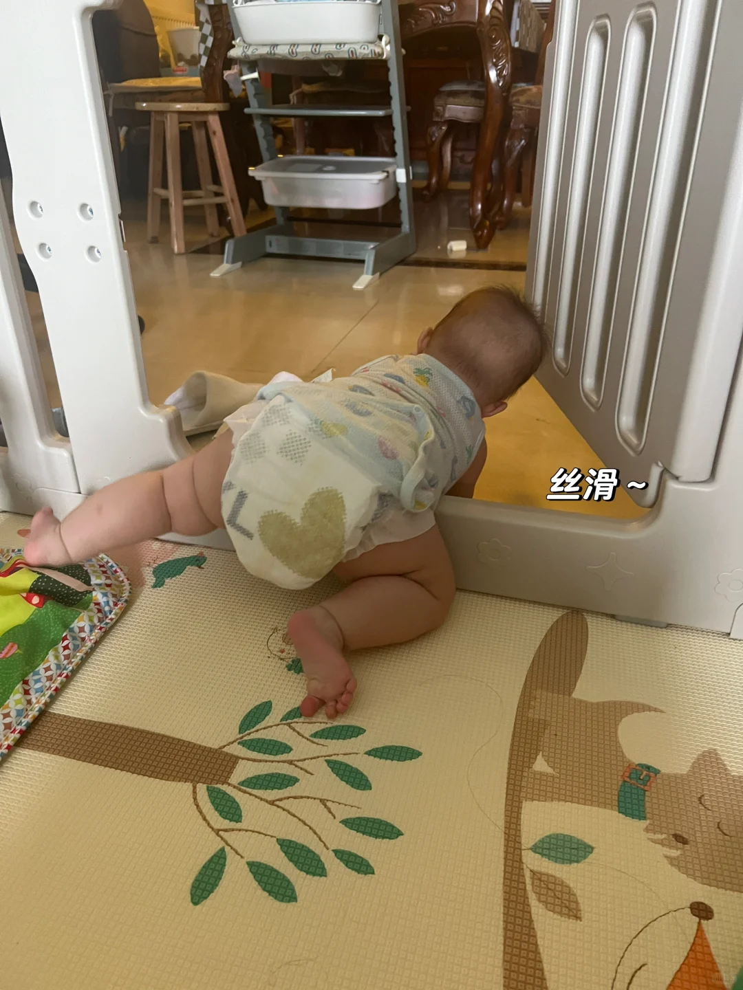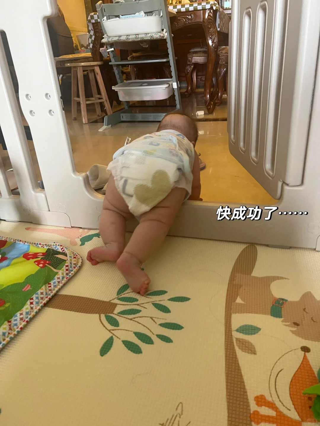 我家大运动发展飞速,各种翻爬坐站,赶紧安排了围栏,防止她磕碰~结果人家不乐意,趁不注意就开始越狱了~这核心力量比老母亲都强,服了[失望R]