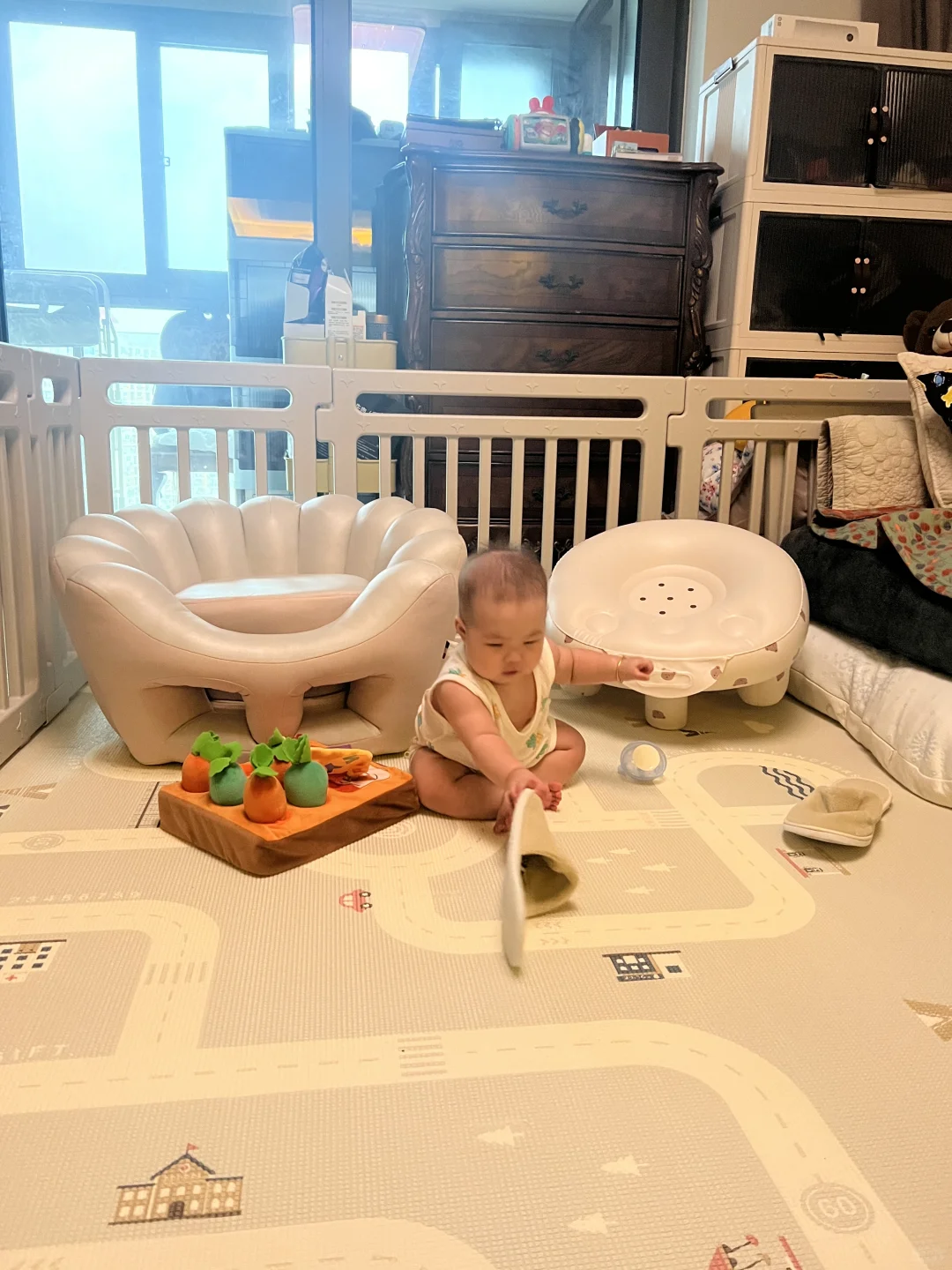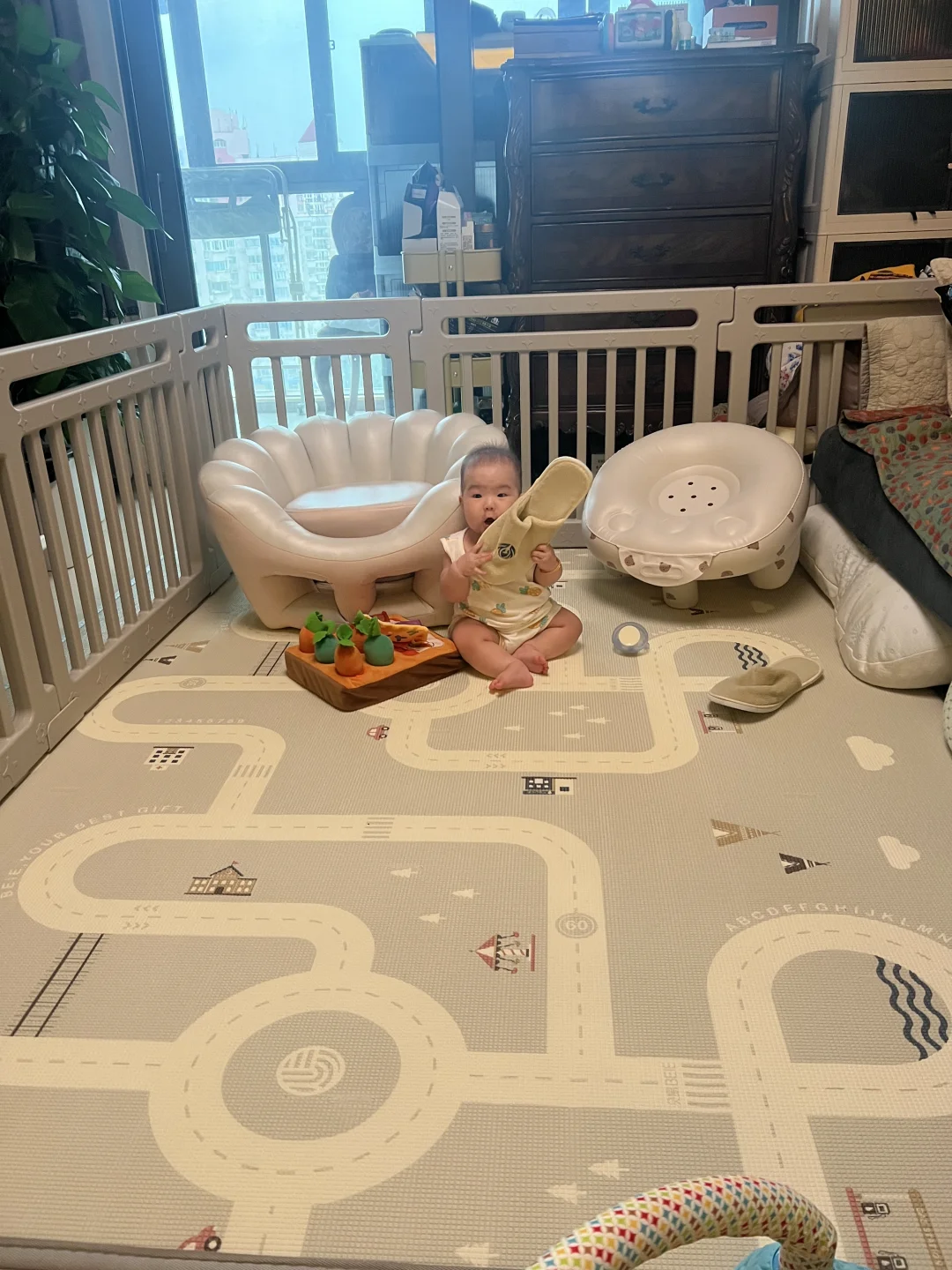 这年头,小宝贝都懂得追求"妈妈的味道"了,拖鞋比啥玩具都香,晒娃界的新高度啊