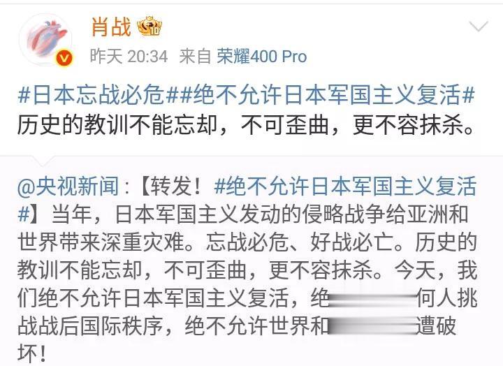 一句“历史的教训不能忘却”,点明了肖战的爱国主义情怀!