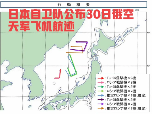 除轰炸机外,俄空天军还疑似出动8架次歼击机,对轰炸机进行护航。日本空自紧急起飞战斗机拦截。俄空天军飞机均未进入日本领空,但航路是特别明显的"突击航路"——轰炸机以2架一组,3组在多个方向同时动作,在抵近日本后,未立即折返(试探反应),也未贴日本领空边线长时间飞行(电子侦察),而是抵近后侧转飞行约5-10分钟后折返,这最有可能是在模拟投弹动作;因为每架飞机齐射8-12发空射巡航导弹,要最终确认目标、装订火控诸元、导弹热机等,一共需5-10分钟。