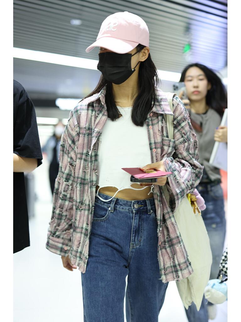 辛芷蕾这穿搭,简单格子衬衫搭白T牛仔裤,时尚界的小能手,轻松赢很大!真心学不来这股随性美