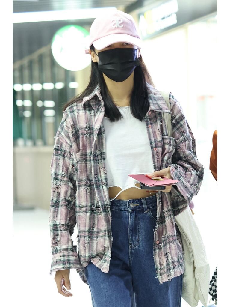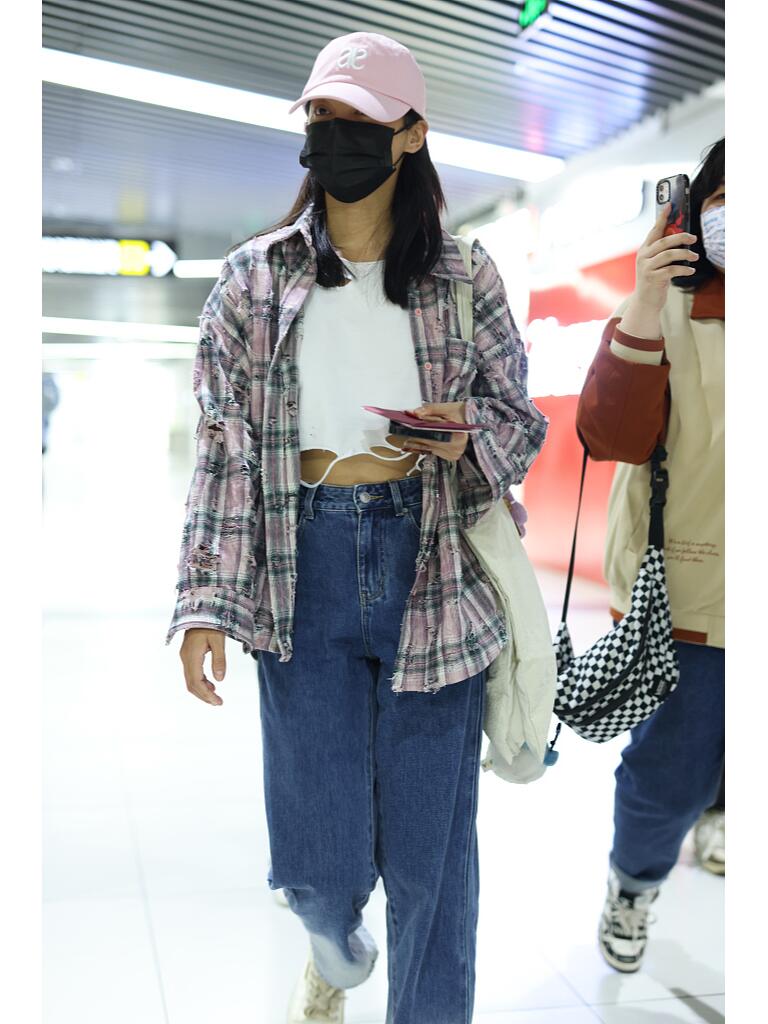 辛芷蕾这穿搭,格子衬衫搭直筒裤,简单舒服看着就心情好,休闲风就是有种让人轻松的魅力~